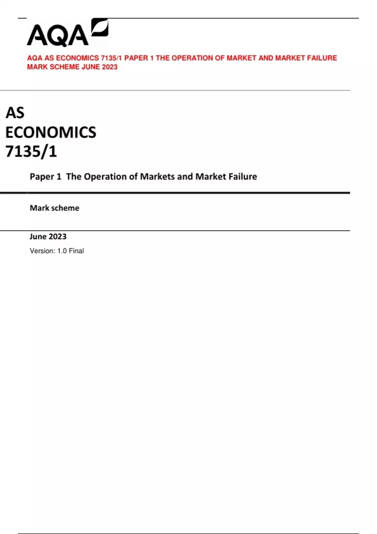 AQA AS ECONOMICS 7135/1 PAPER 1 THE OPERATION OF MARKET AND MARKET FAILURE MARK SCHEME JUNE 2023