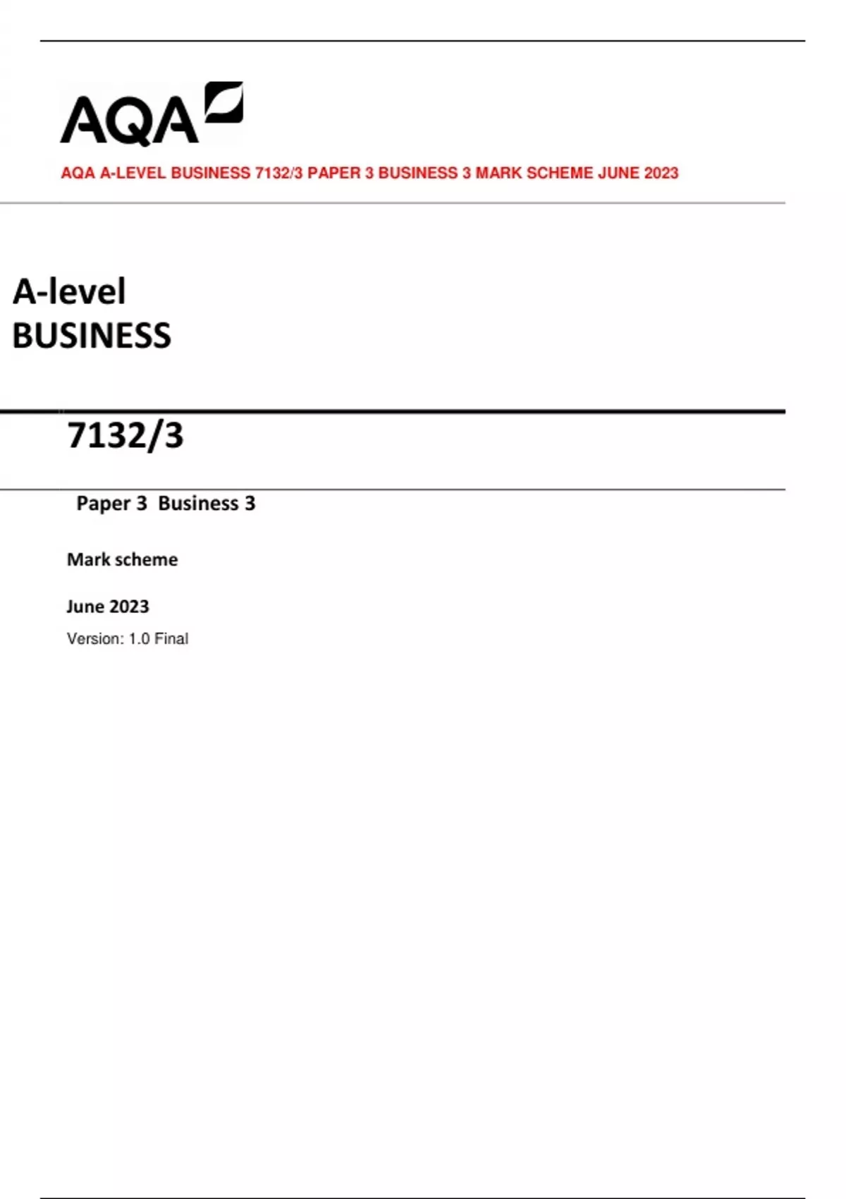 AQA A-LEVEL BUSINESS 7132/3 PAPER 3 BUSINESS 3 MARK SCHEME JUNE 2023