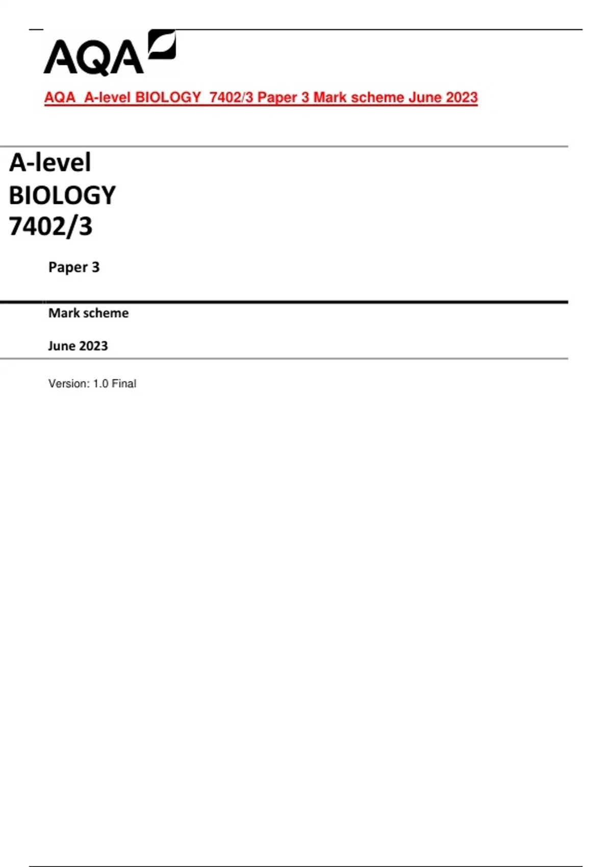 AQA A-level BIOLOGY 7402/3 Paper 3 Mark scheme June 2023