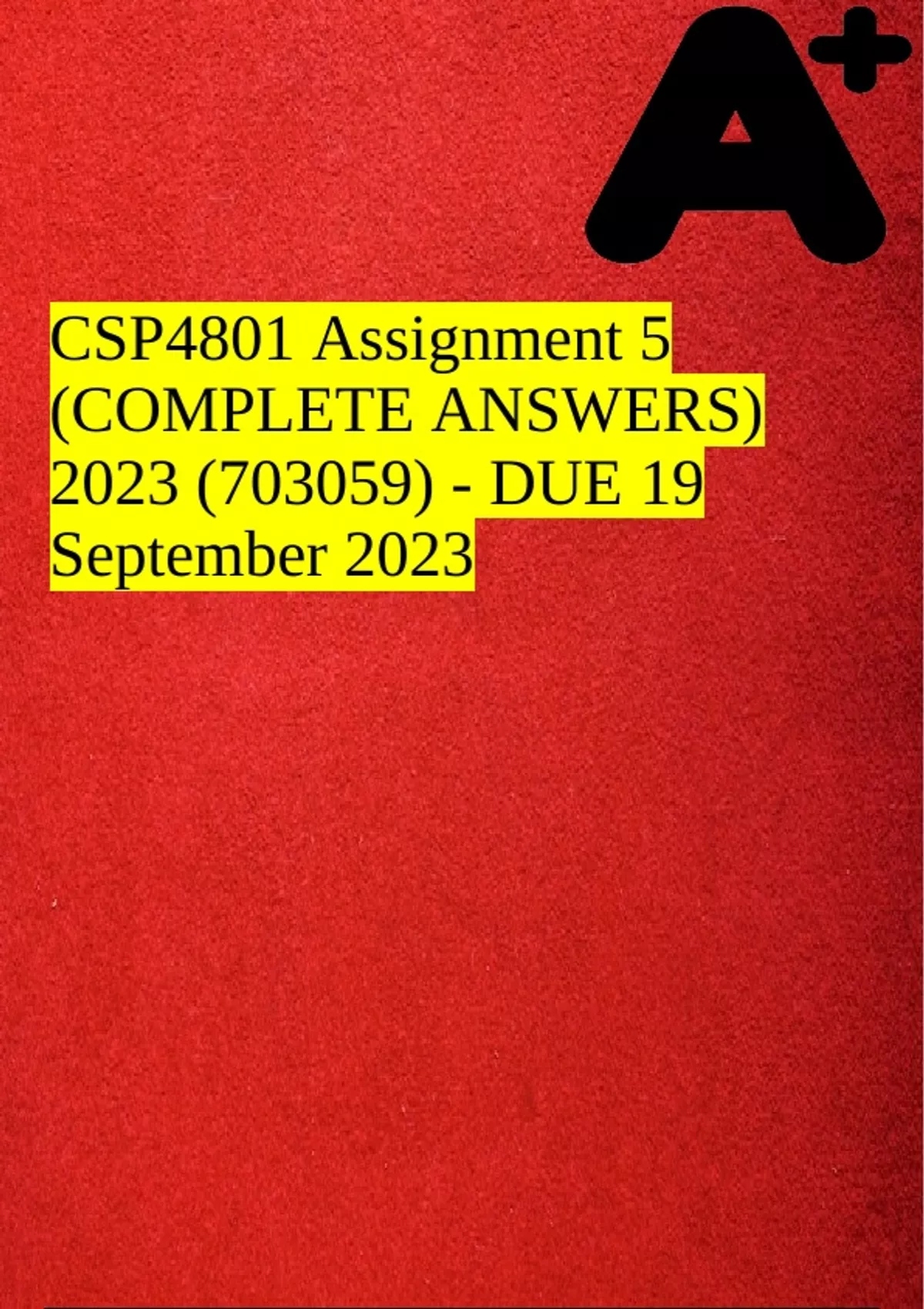 CSP4801 Assignment 5 (COMPLETE ANSWERS) 2023 (703059) - DUE 19 September 2023CSP4801 Assignment 5 (COMPLETE ANSWERS) 2023 (703059) - DUE 19 September 2023CSP4801 Assignment 5 (COMPLETE ANSWERS) 2023 (703059) - DUE 19 September 2023CSP4801 Assignment 5 (COMPLETE ANSWERS) 2023 (703059) - DUE 19 September 2023CSP4801 Assignment 5 (COMPLETE ANSWERS) 2023 (703059) - DUE 19 September 2023CSP4801 Assignment 5 (COMPLETE ANSWERS) 2023 (703059) - DUE 19 September 2023CSP4801 Assignment 5 (COMPLETE ANSWERS) 2023 (703059) - DUE 19 September 2023CSP4801 Assignment 5 (COMPLETE ANSWERS) 2023 (703059) - DUE 19 September 2023