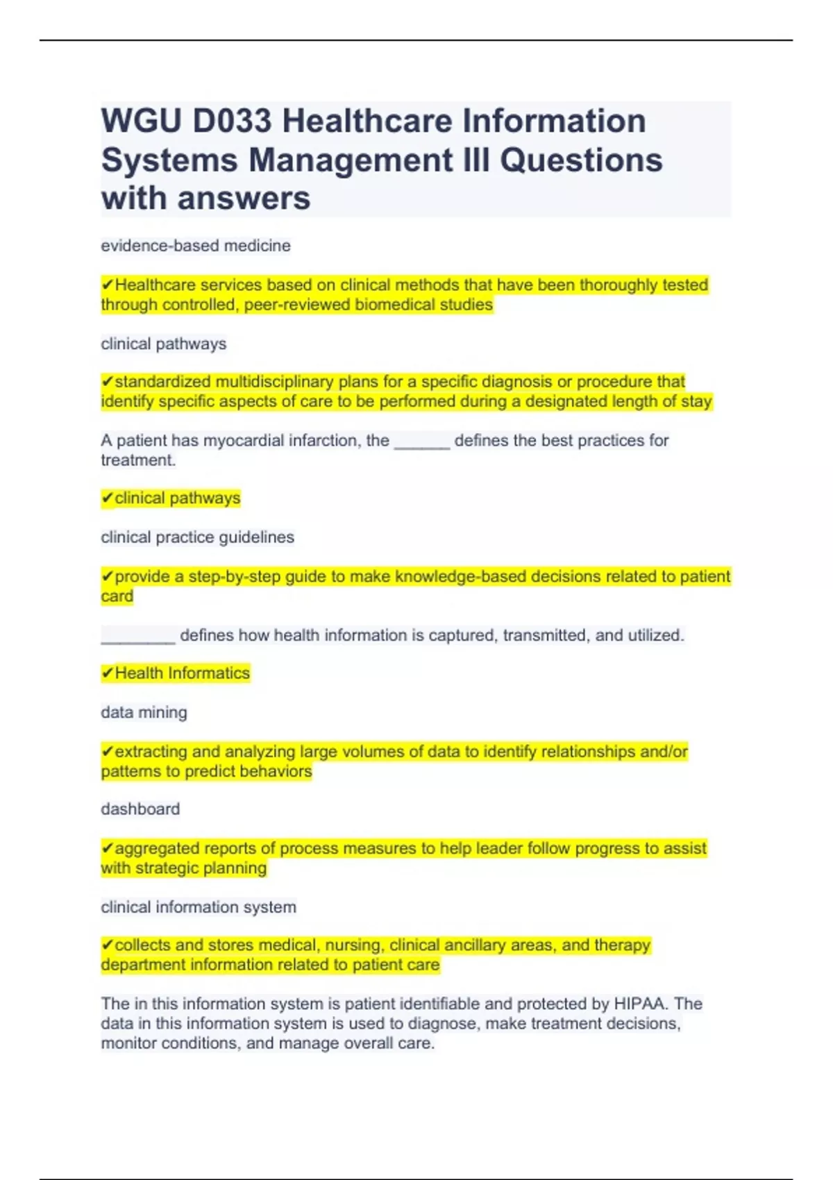 WGU D033 Healthcare Information Systems Management III Questions with answers