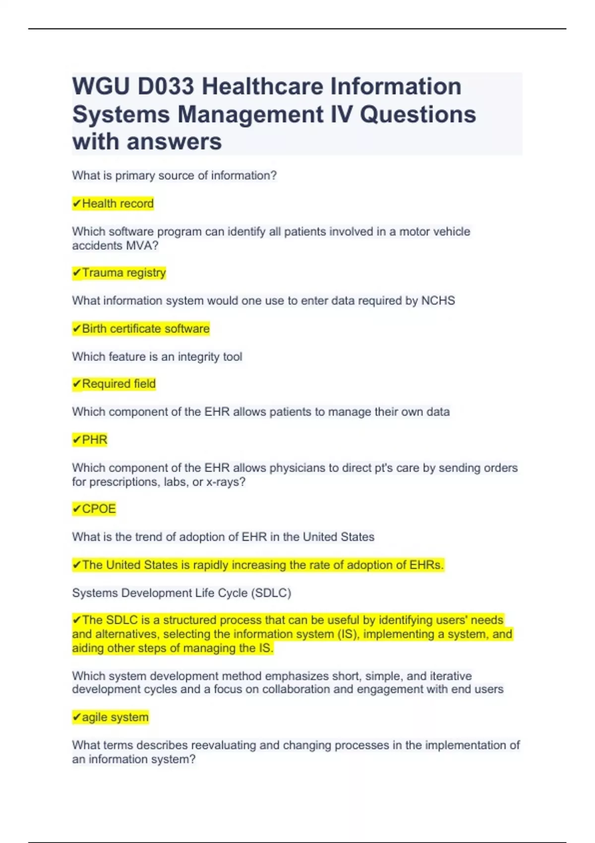 WGU D033 Healthcare Information Systems Management IV Questions with answers
