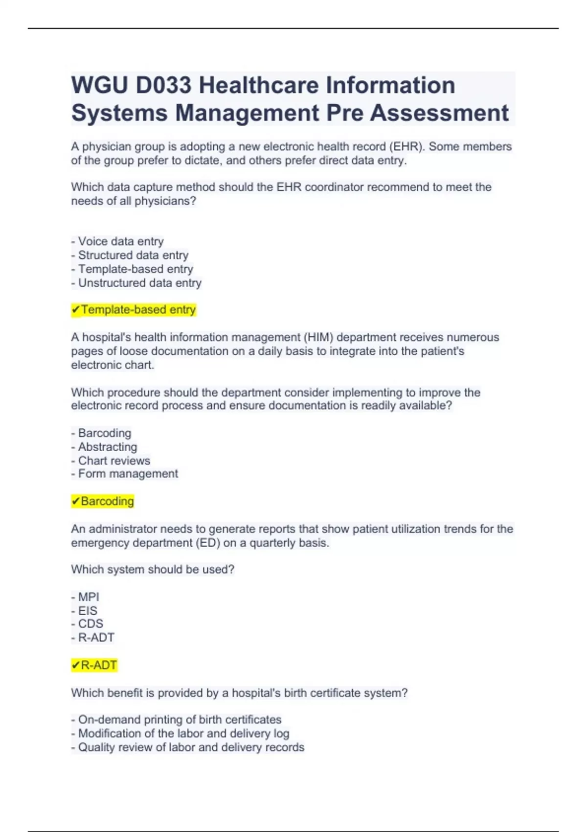 WGU D033 Healthcare Information Systems Management Pre Assessment