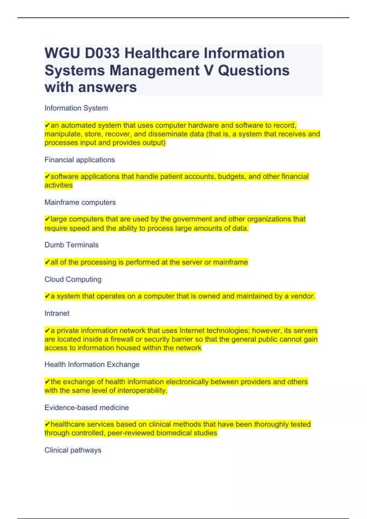 WGU D033 Healthcare Information Systems Management V Questions with answers