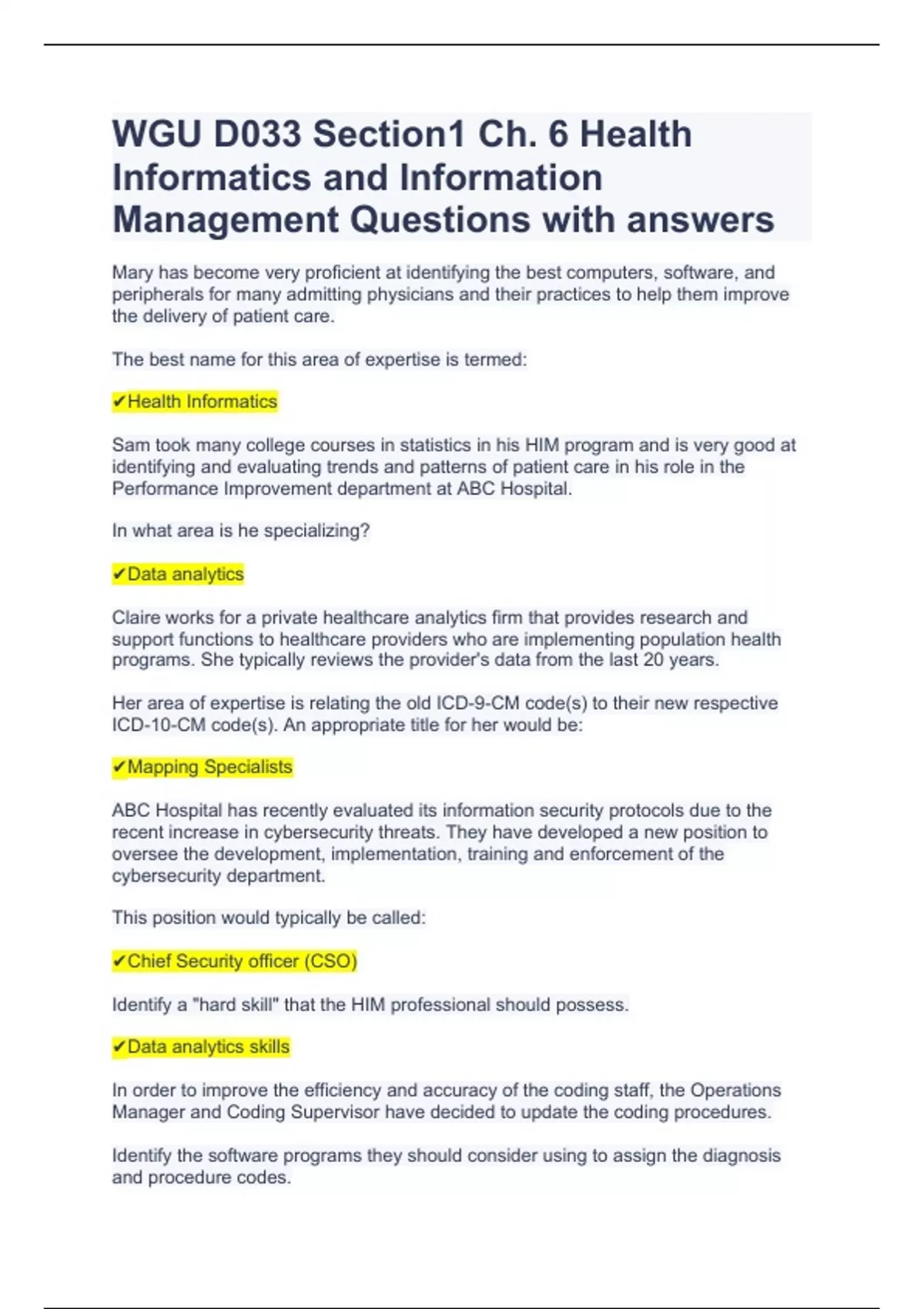 WGU D033 Section1 Ch. 6 Health Informatics and Information Management Questions with