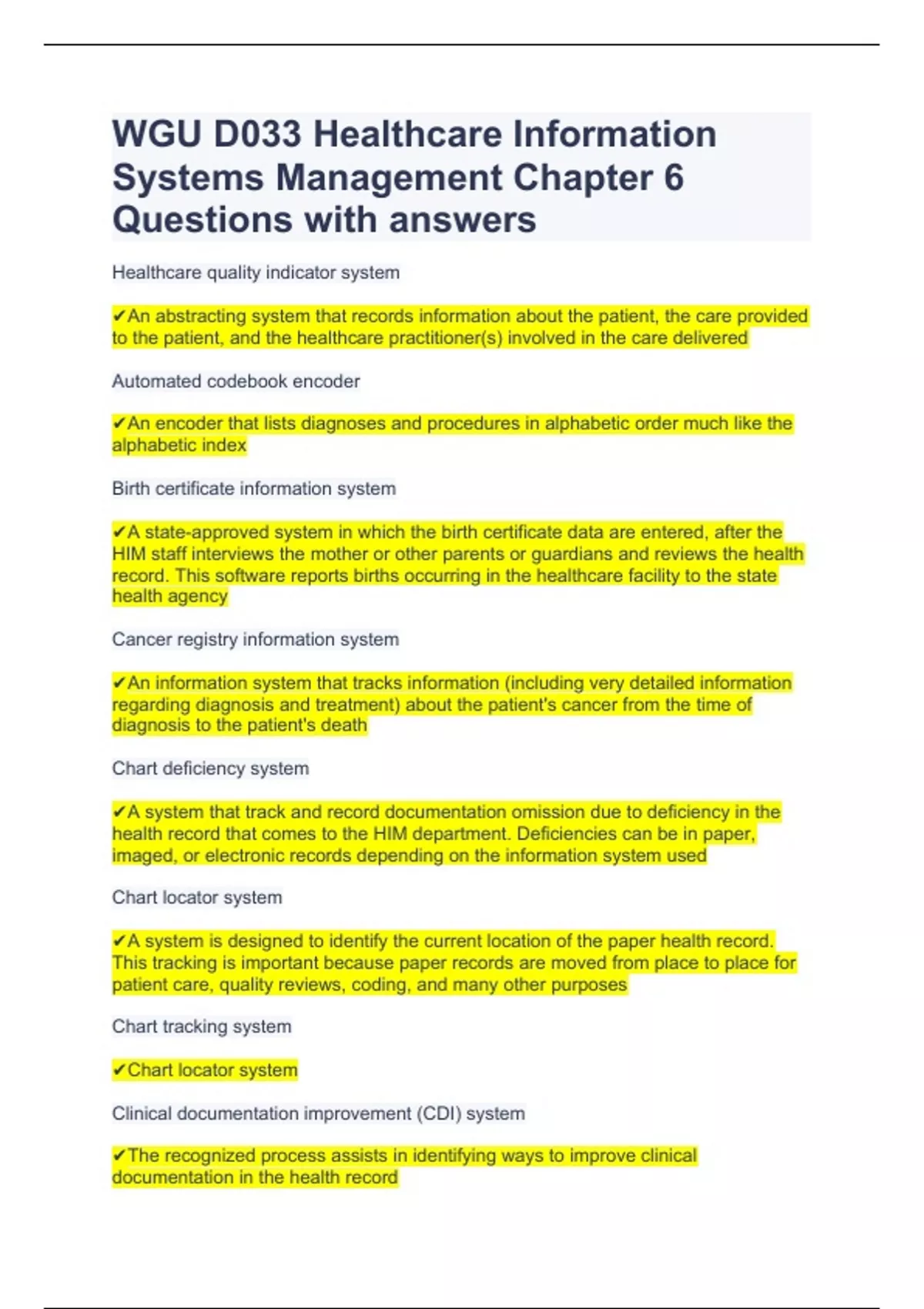 WGU D033 Healthcare Information Systems Management Chapter 6 Questions with answers.