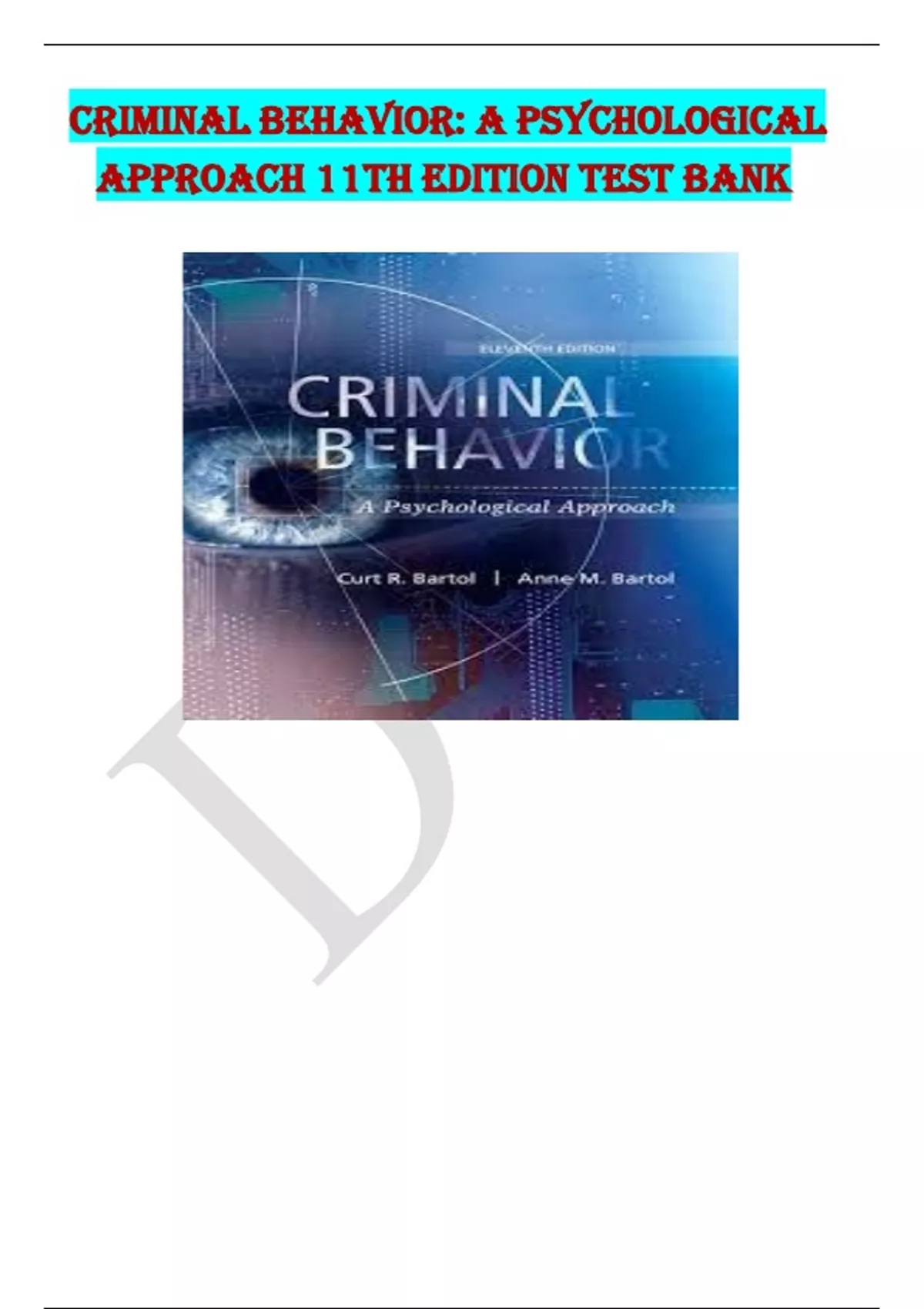 Criminal Behavior: A Psychological Approach 11th Edition Test Bank