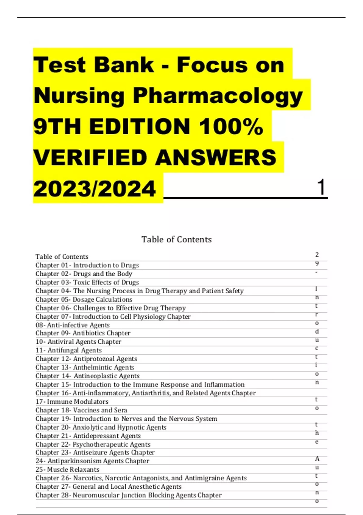 Test Bank - Focus on Nursing Pharmacology 9TH EDITION 100% VERIFIED ANSWERS 2023/2024