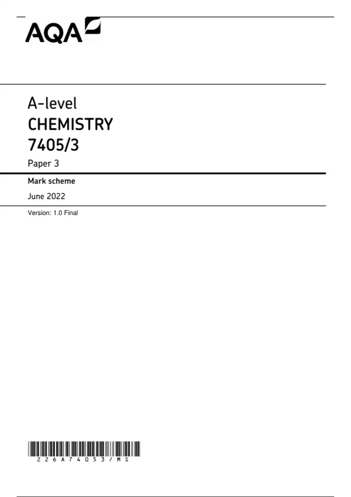 AQA A LEVEL CHEMISTRY PAPER 3 MARK SCHEME JUNE 2023 (7405-3)