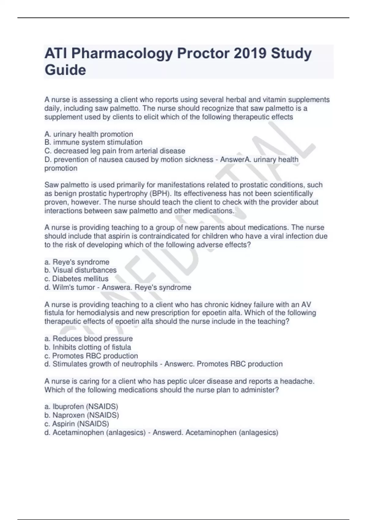 ATI Pharmacology Proctor 2019 Study GuideATI Pharmacology Proctor 2019 Study GuideATI Pharmacology Proctor 2019 Study GuideATI Pharmacology Proctor 2019 Study Guide