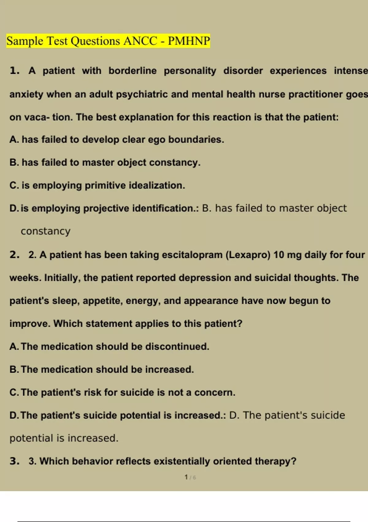sample test questions ancc pmhnp