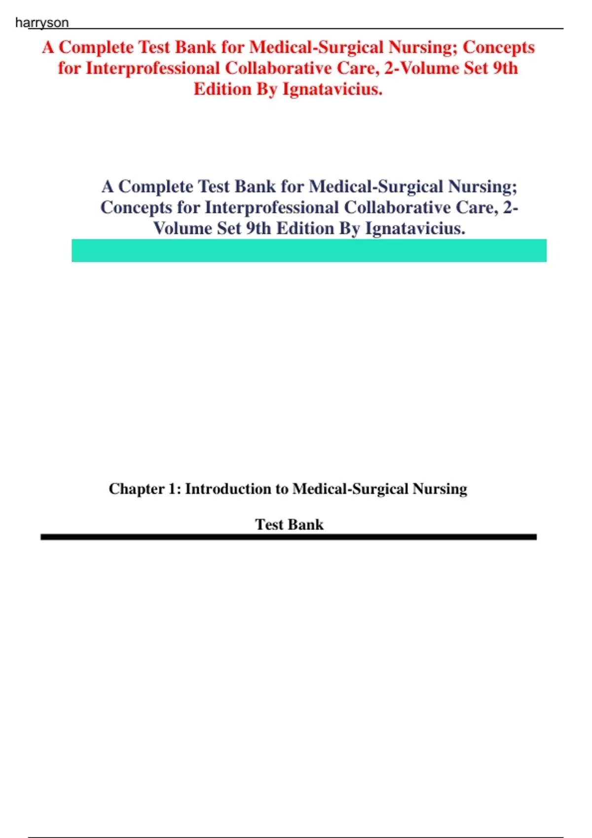 A complete test bank for medical surgical nursing concepts for interprofessional collaborative care 2 volume set 9th editio...