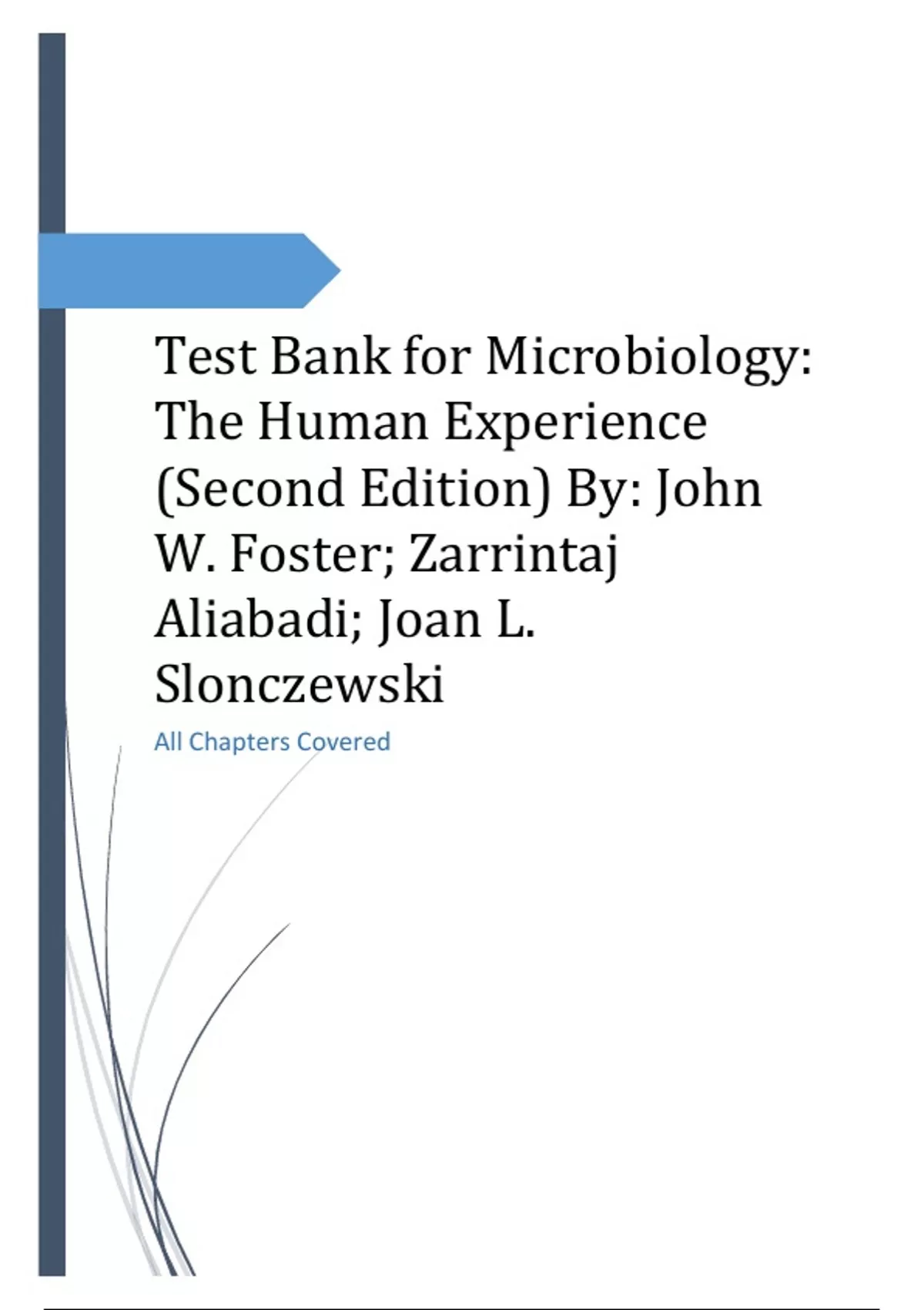 Test Bank for Microbiology The Human Experience (Second Edition) By John W. Foster Zarrintaj Aliabadi Joan L. Slonczewski ALL CHAPTERS