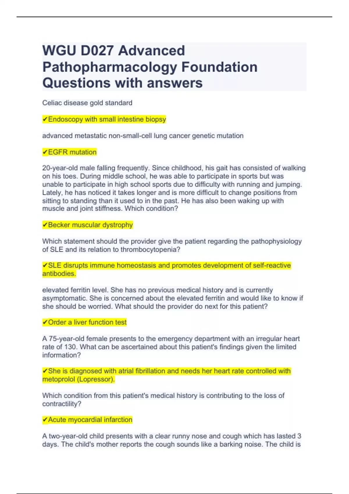 WGU D027 Advanced Pathopharmacology Foundation Questions with answers