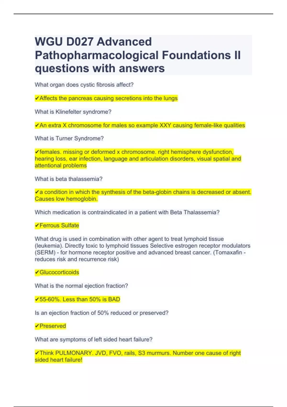 WGU D027 Advanced Pathopharmacological Foundations II questions with answers