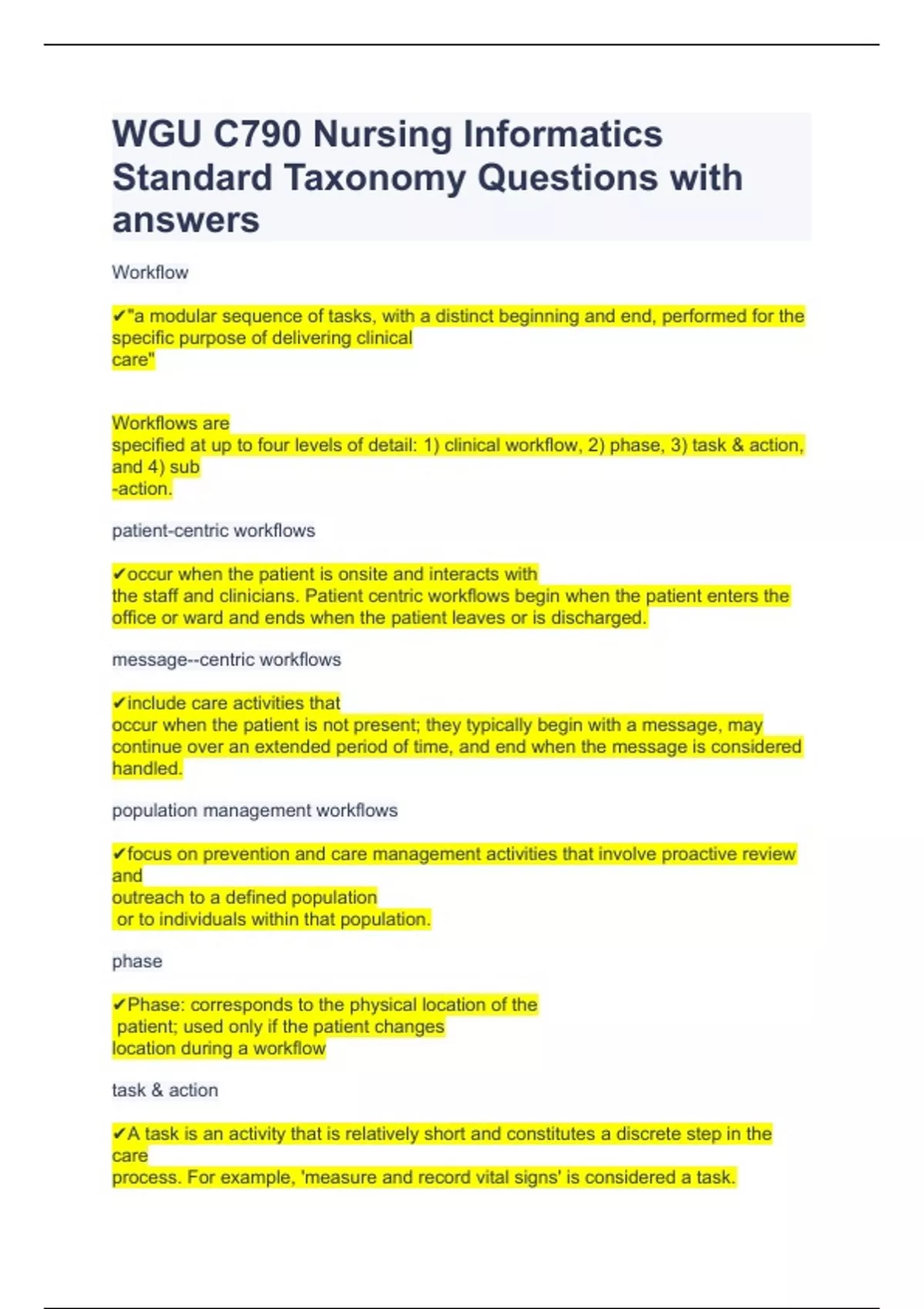 WGU C790 Nursing Informatics Standard Taxonomy Questions with answers
