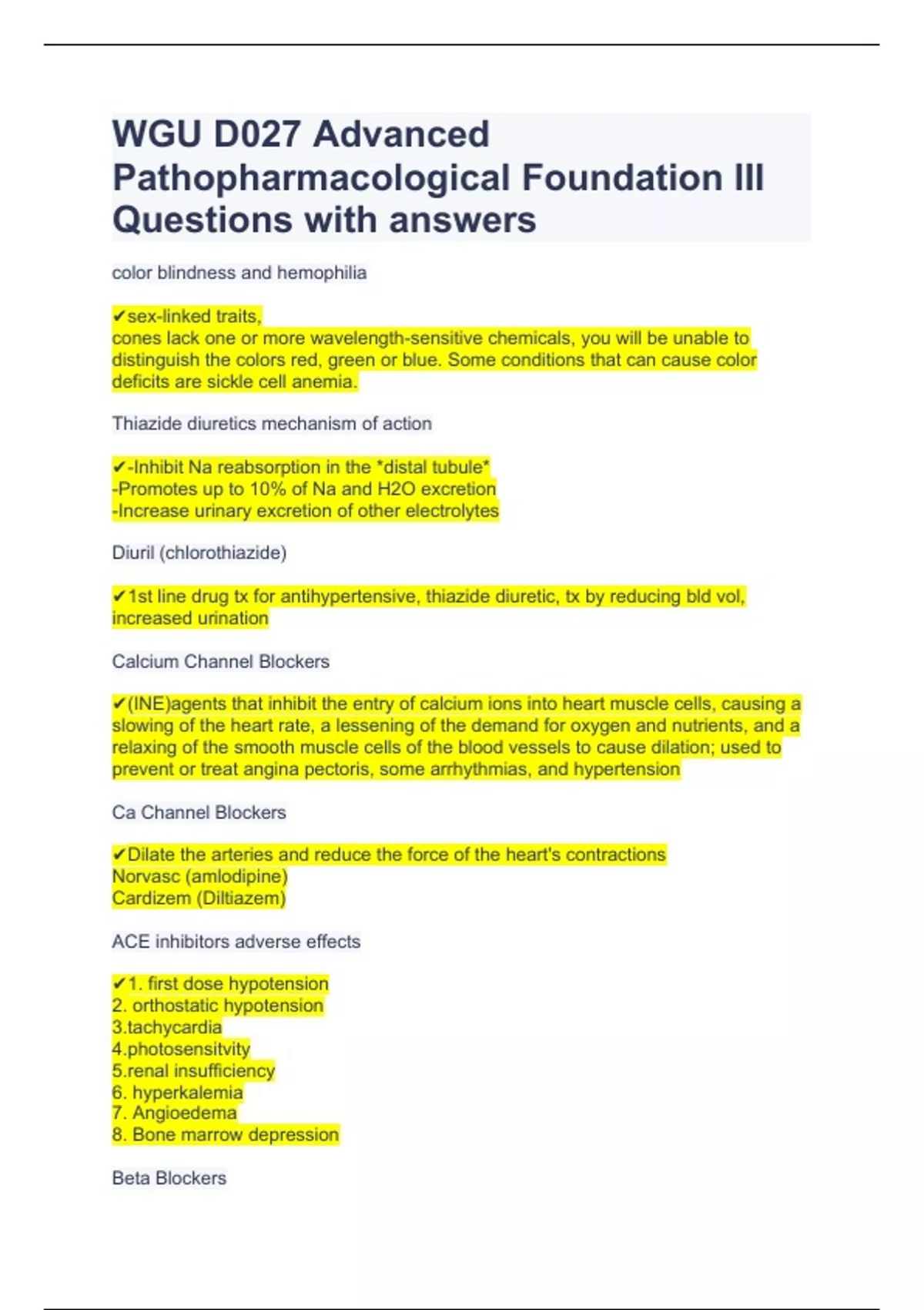 WGU D027 Advanced Pathopharmacological Foundation III Questions with answers