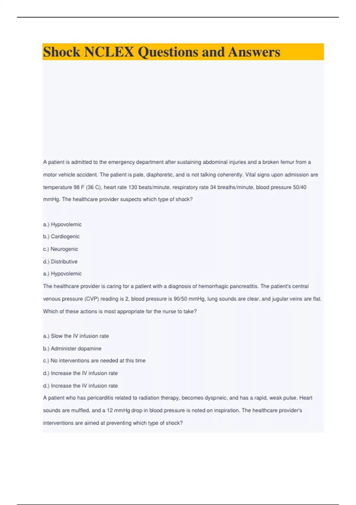 - Shock NCLEX