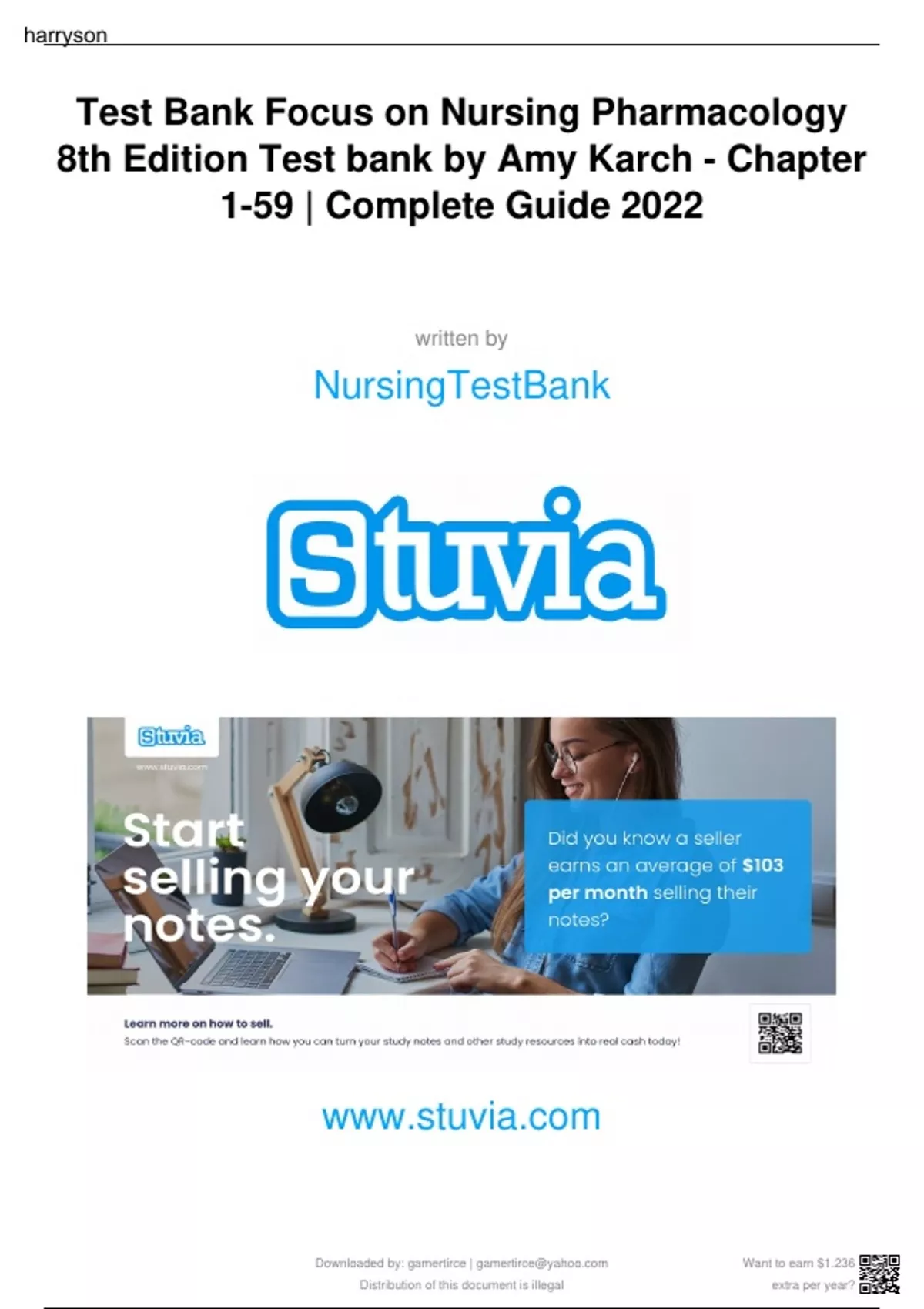 Test Bank - Focus on Nursing Pharmacology 9th Edition by Amy Karch Chapter 1-59 | Complete Guide 2023.