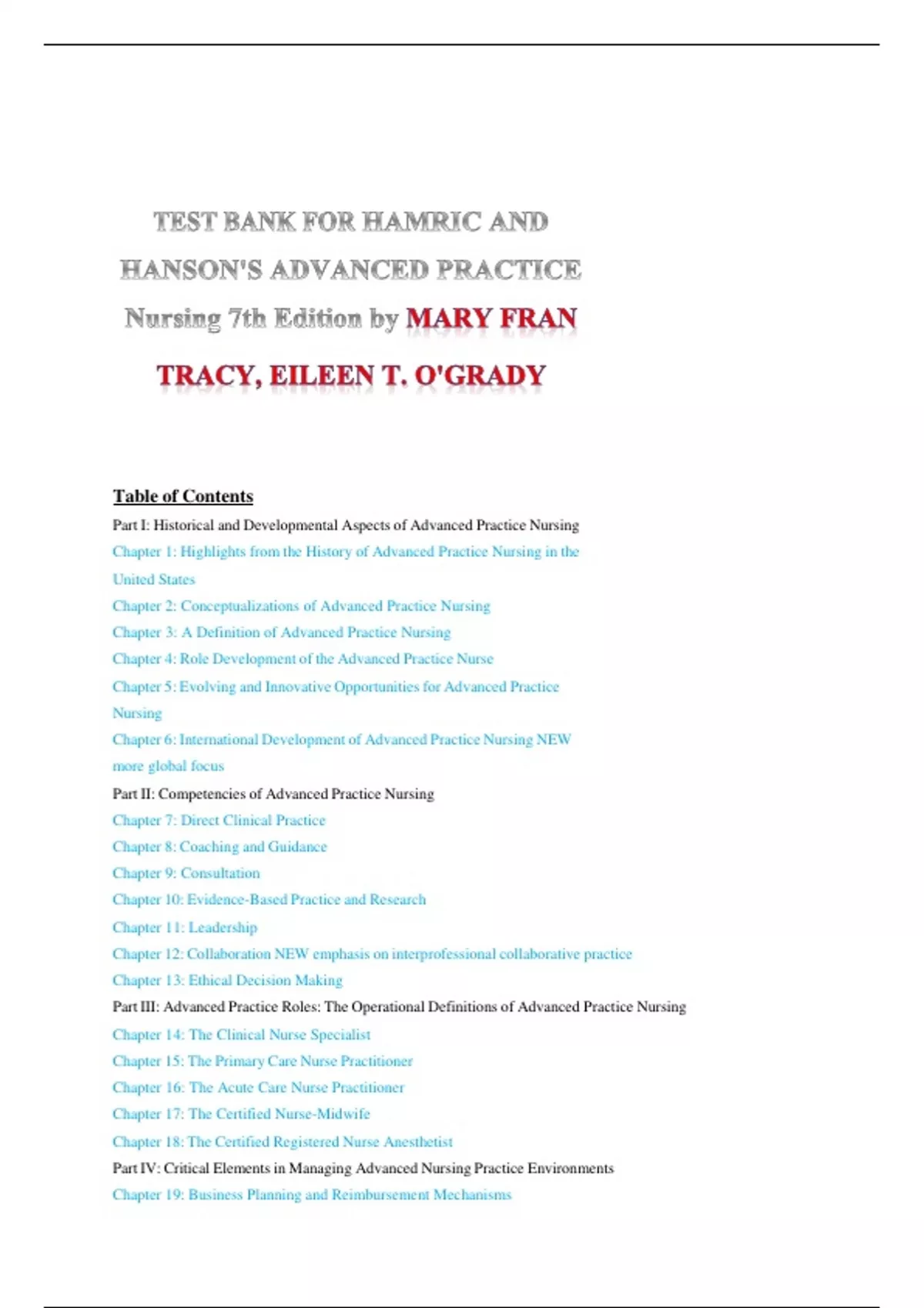 TEST BANK FOR HAMRIC AND HANSON'S ADVANCED PRACTICE Nursing 7th Edition by MARY FRAN TRACY, EILEEN T. O'GRADY