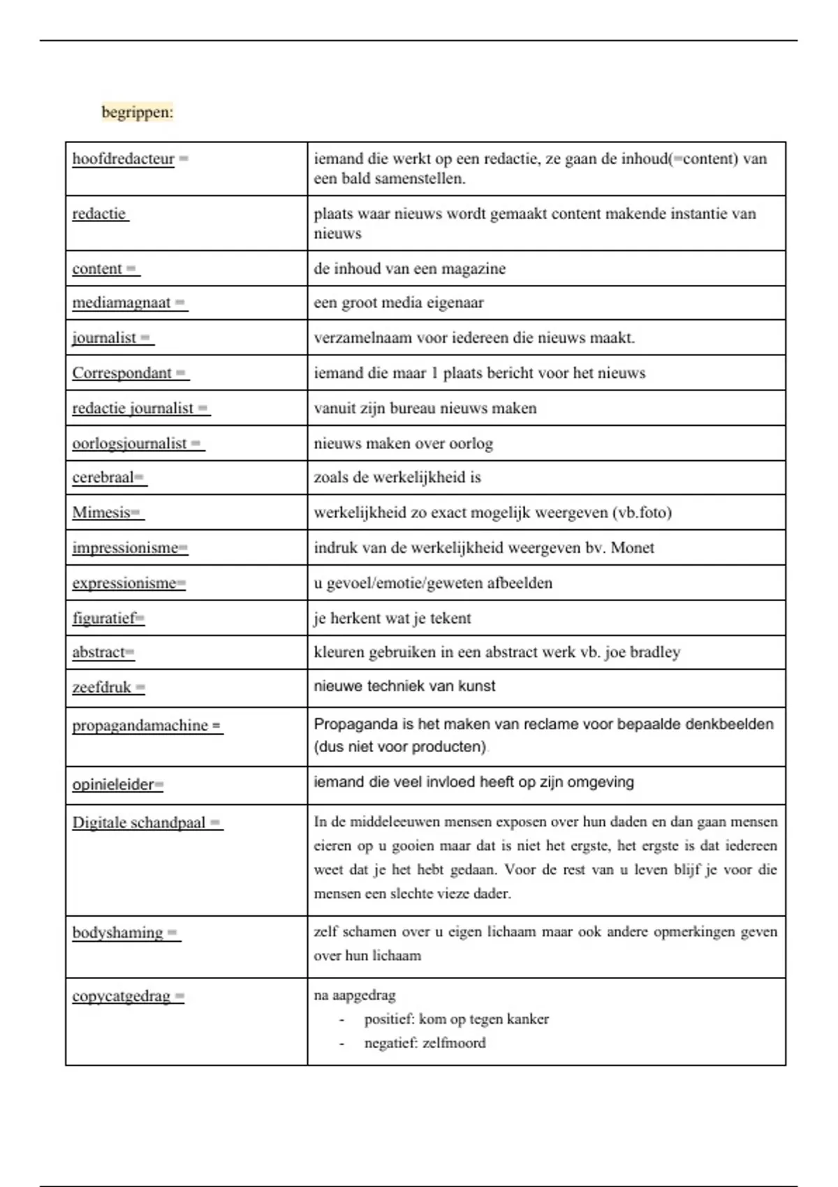 begrippen: