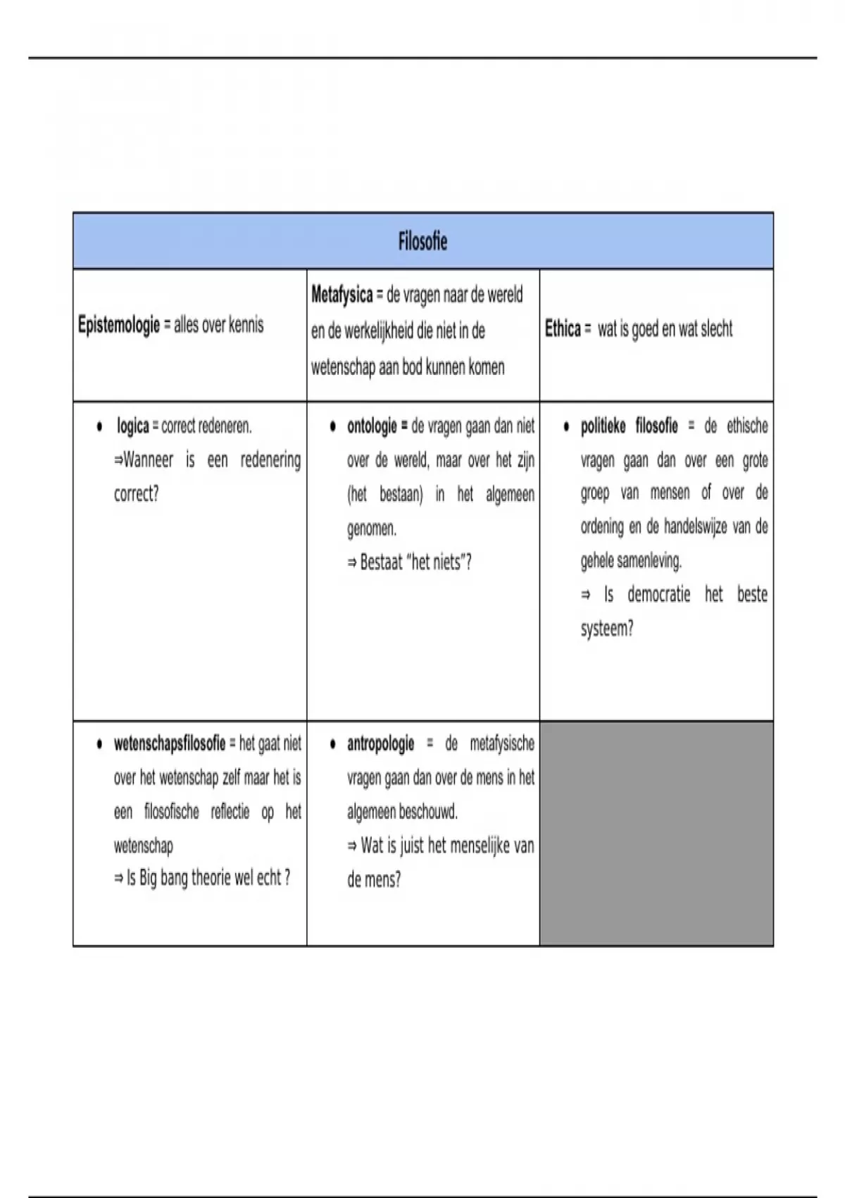 ● wetenschapsfilosofie = het gaat niet ● antropologie = de metafysische