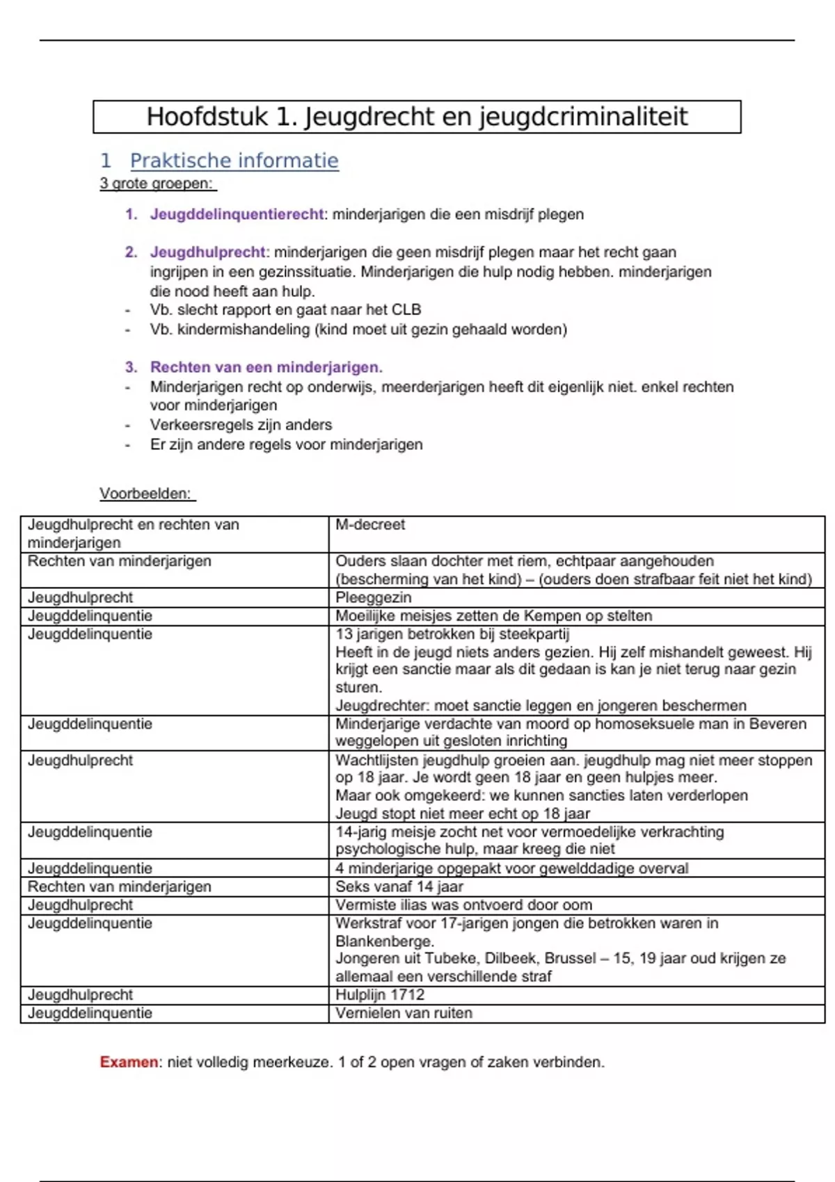1. Jeugddelinquentierecht: minderjarigen die een misdrijf plegen
