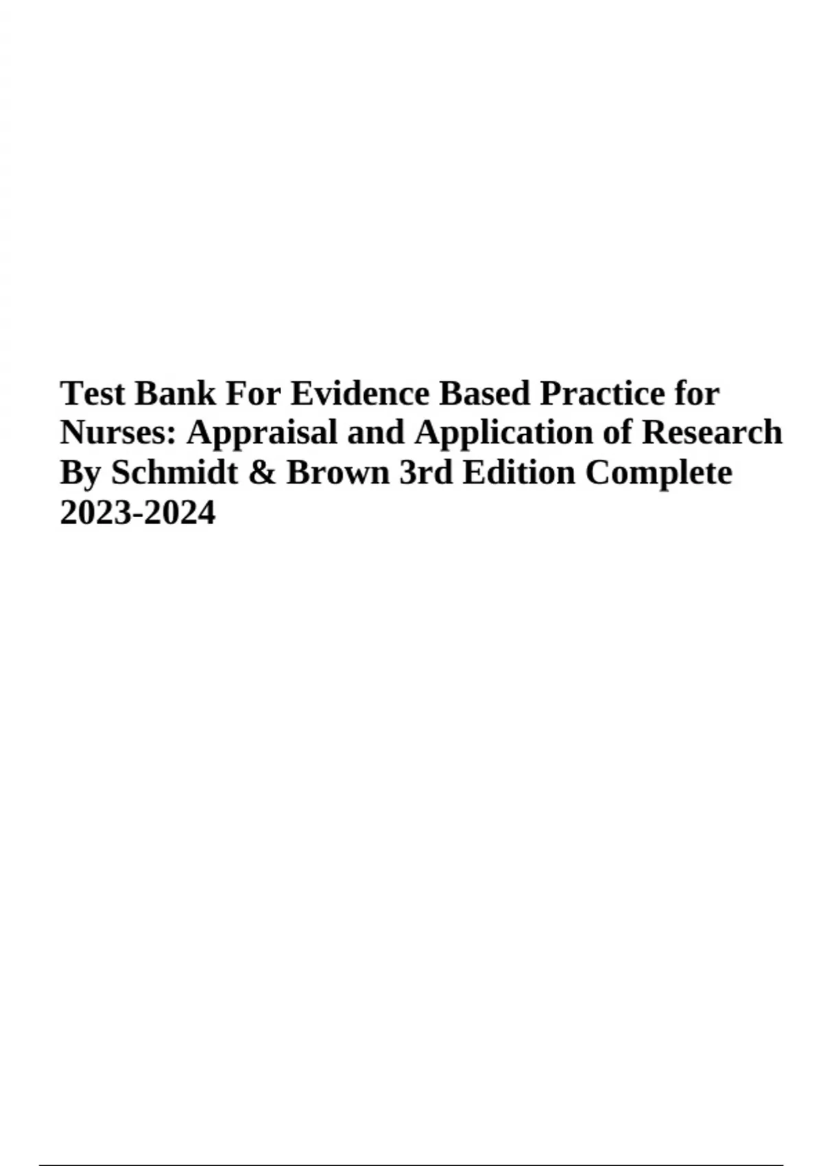 Test Bank For Evidence Based Practice for Nurses, Appraisal and Application of Research By Schmidt & Brown 3rd Edition Chapter 1-18 Updated (VERIFIED)