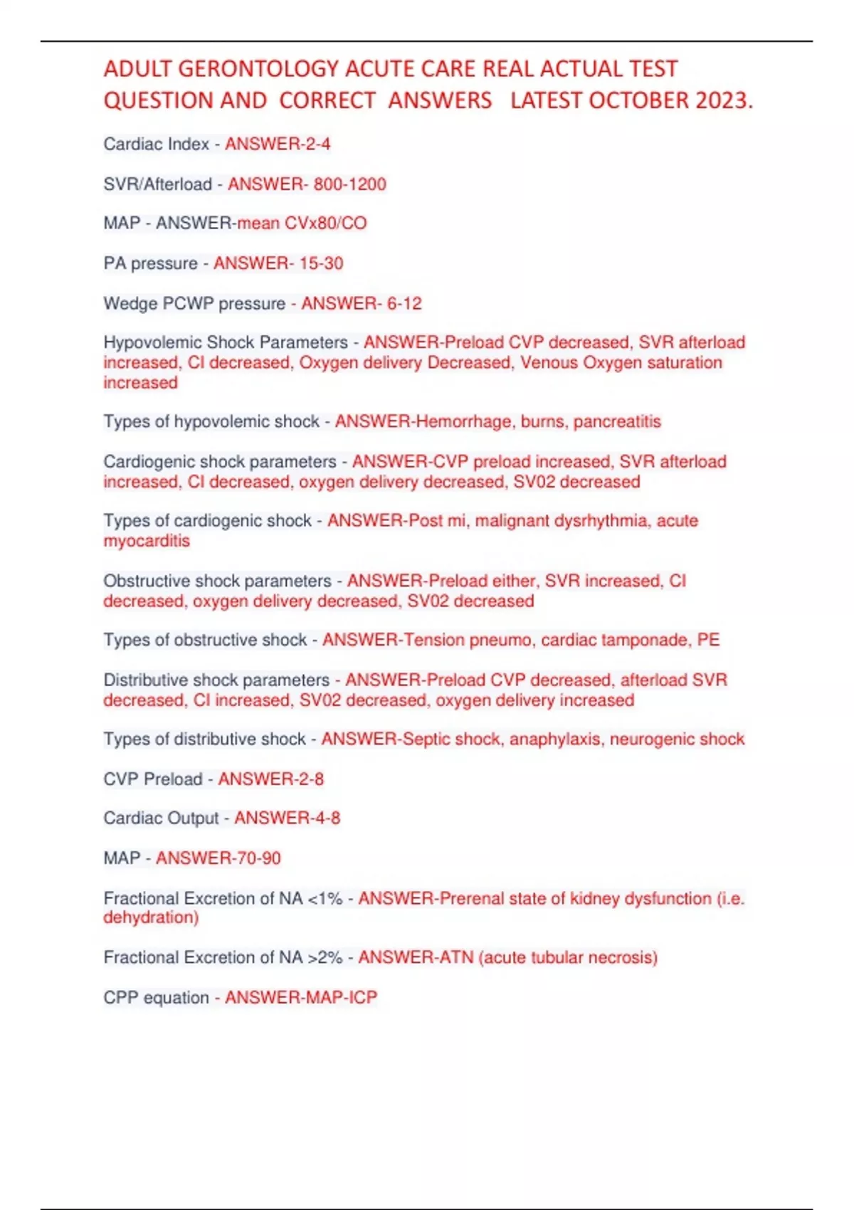 ADULT GERONTOLOGY ACUTE CARE REAL ACTUAL TEST QUESTION AND CORRECT ANSWERS LATEST OCTOBER 2023.