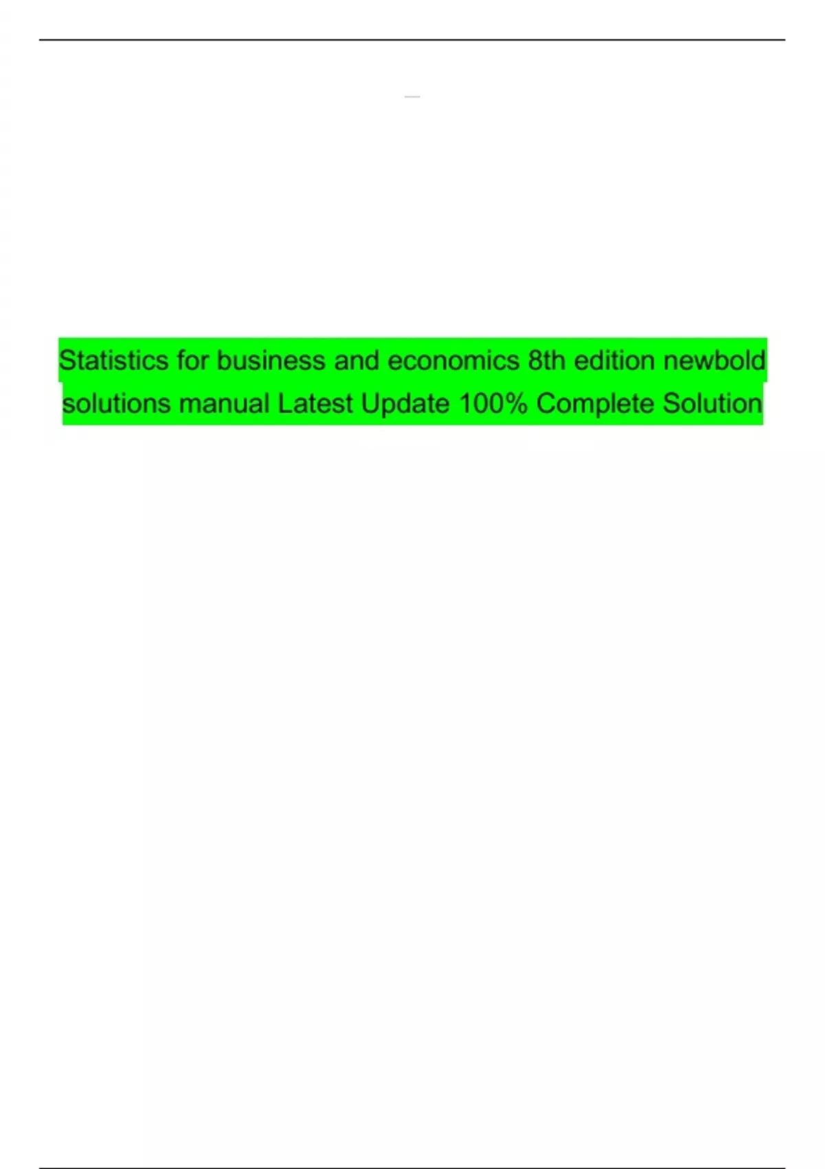 Statistics for business and economics 8th edition newbold solutions manual Latest Update 100% Complete Solution