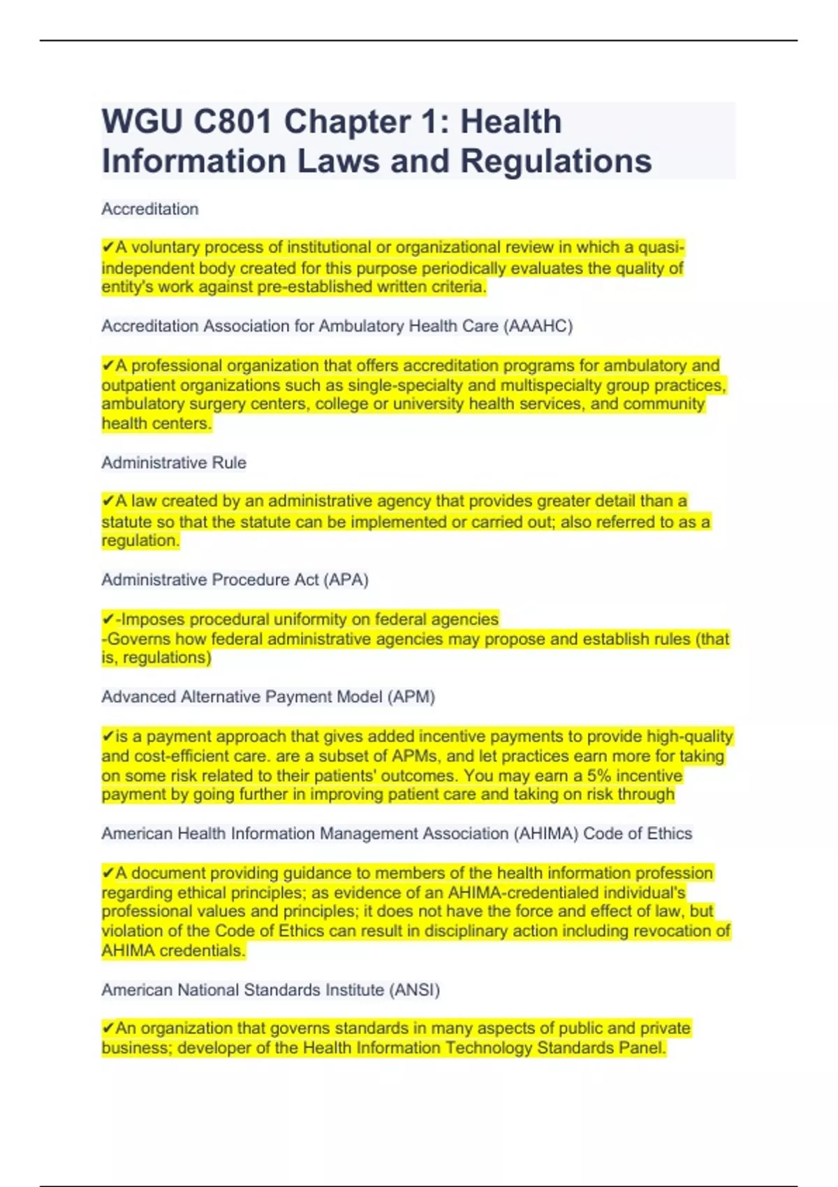 WGU C801 Chapter 1 Health Information Laws and Regulations