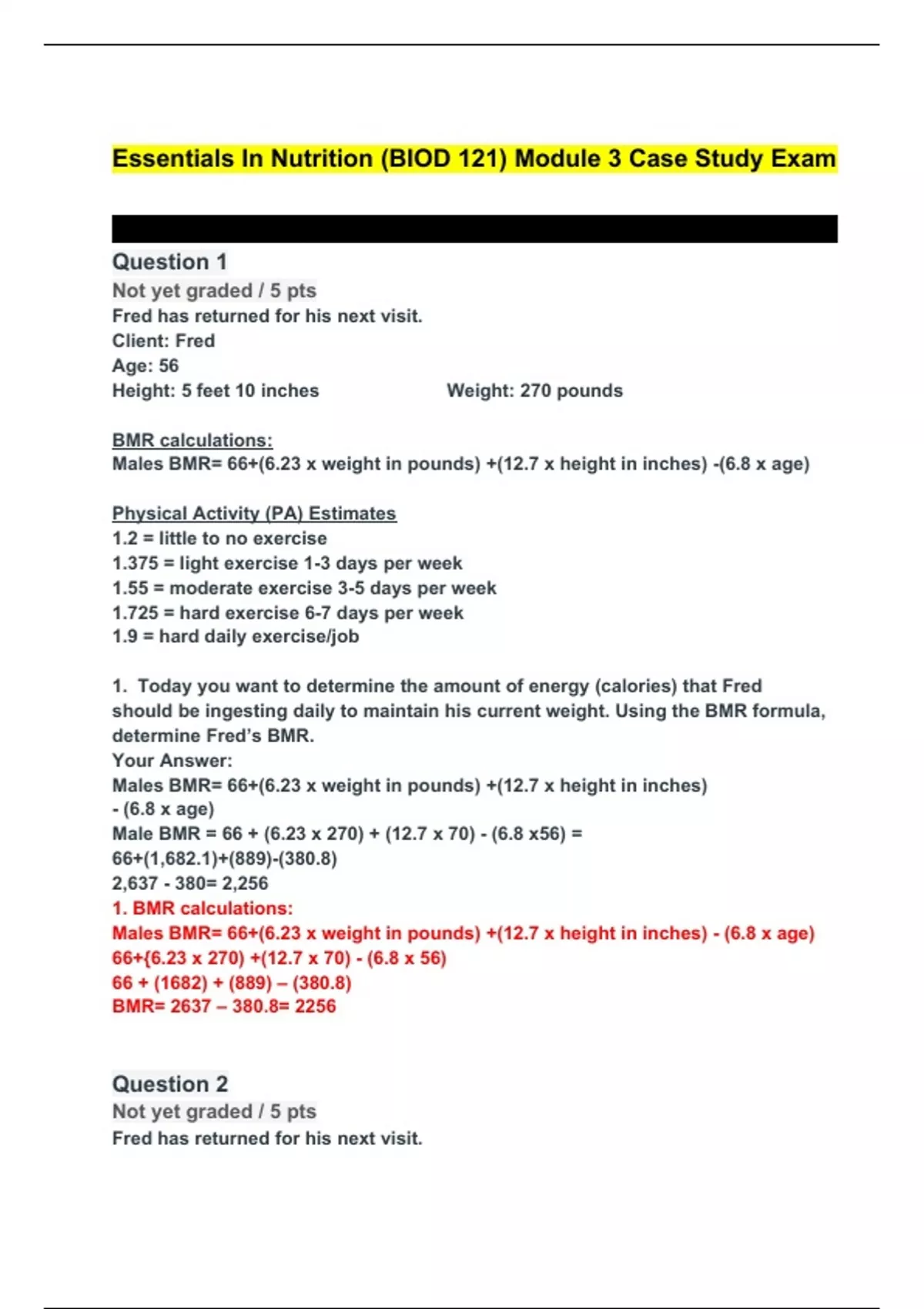 Essentials In Nutrition (BIOD 121) Module 3 Case Study Exam