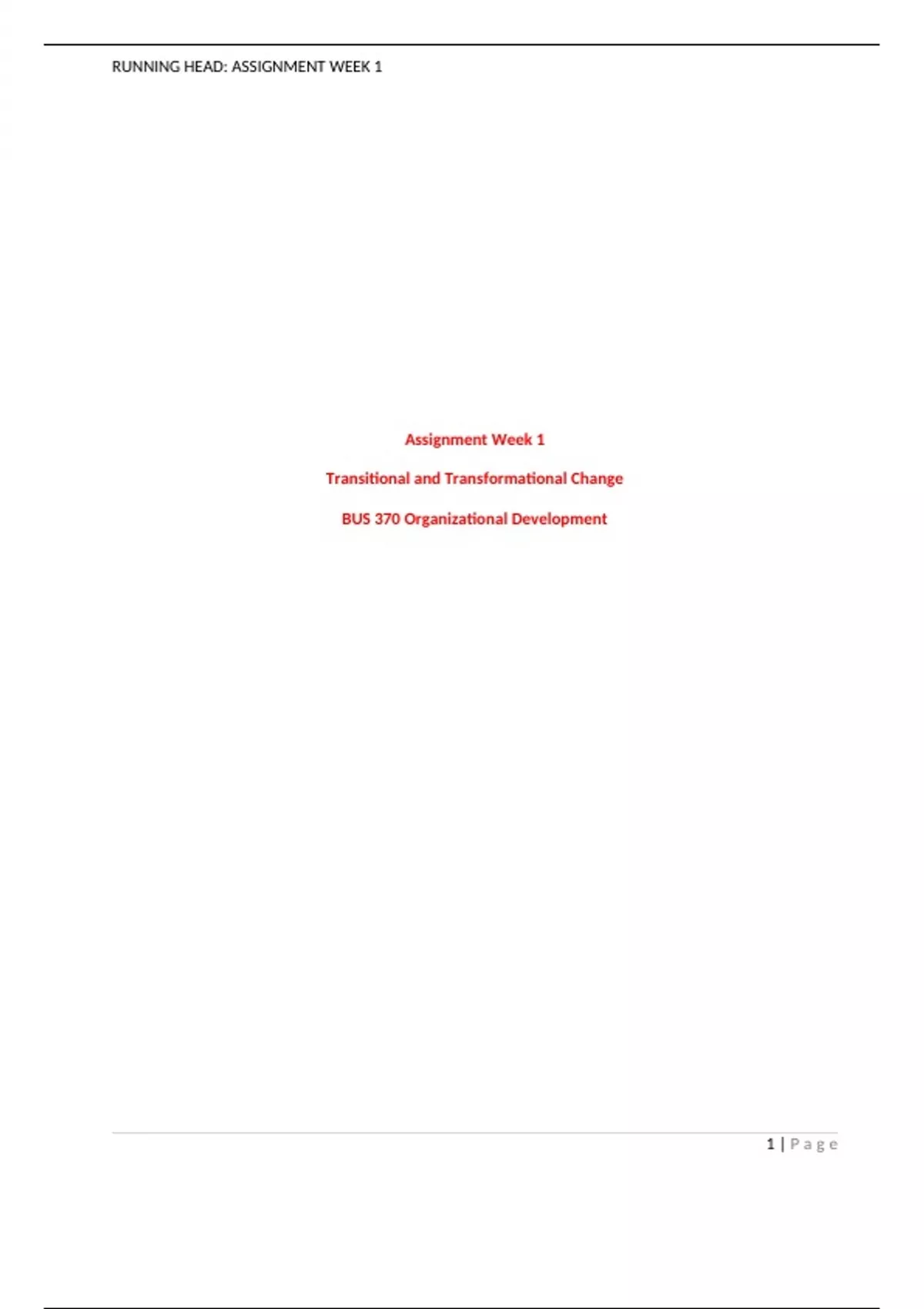 BUS370 Week 1 Assignment, Transitional and Transformational Change.