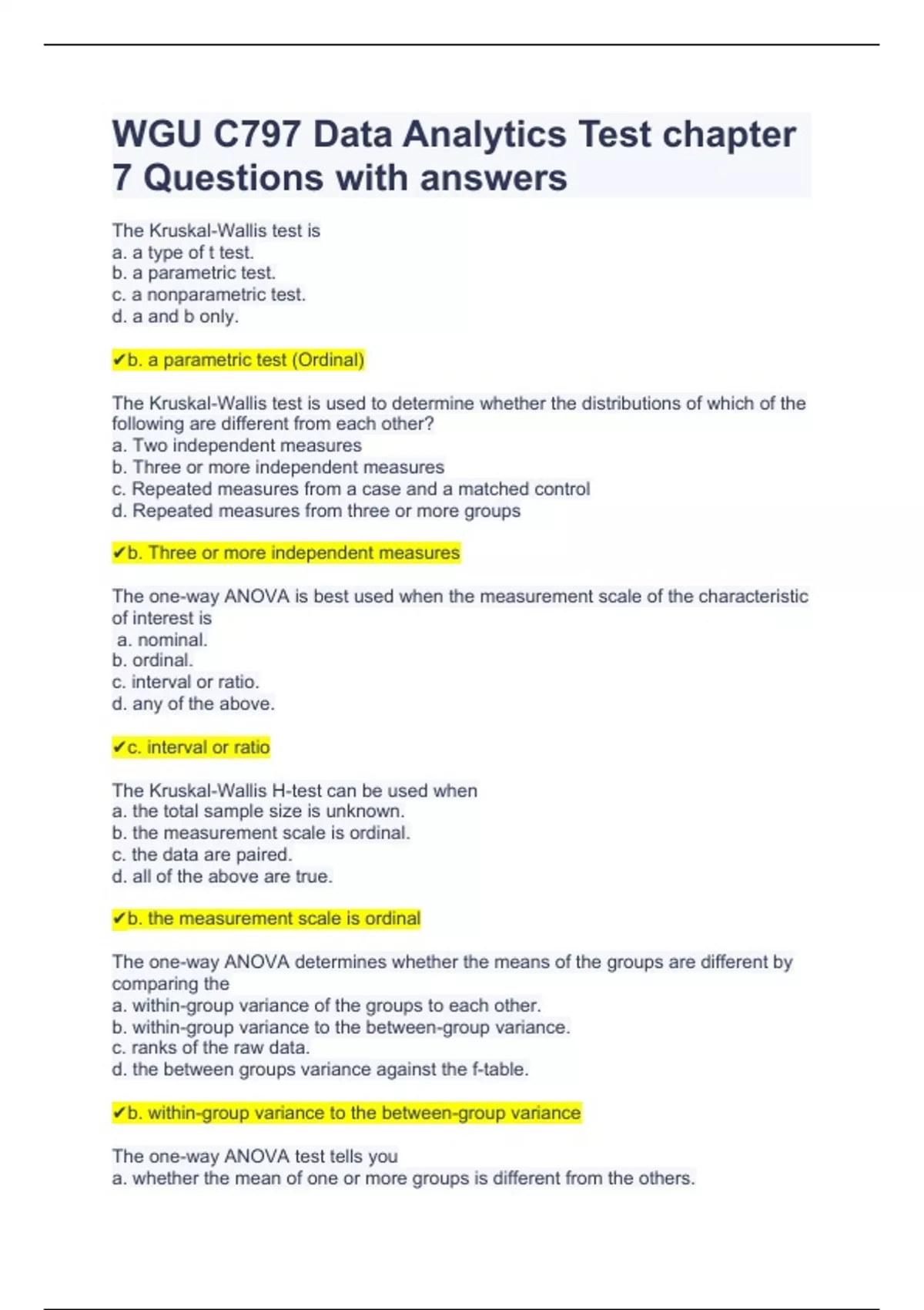 WGU C797 Data Analytics Test chapter 7 Questions with answers