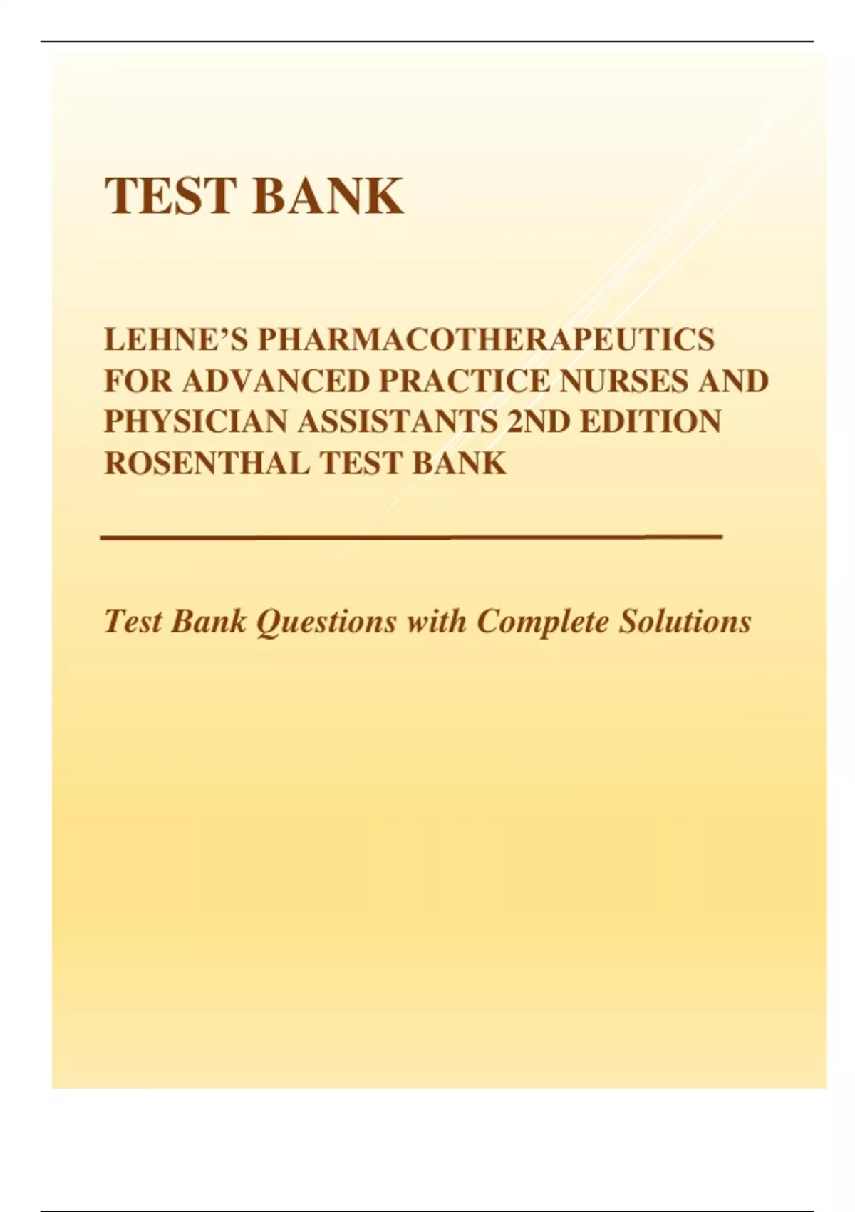 TEST BANK- LEHNE’S PHARMACOTHERAPEUTICS FOR ADVANCED PRACTICE NURSES AND PHYSICIAN ASSISTANTS 2ND EDITION ROSENTHAL TEST BANK Test Bank Questions with Complete Solutions Latest 2023 Questions and Answers with Explanations, All 100% Correct Study Guide, H