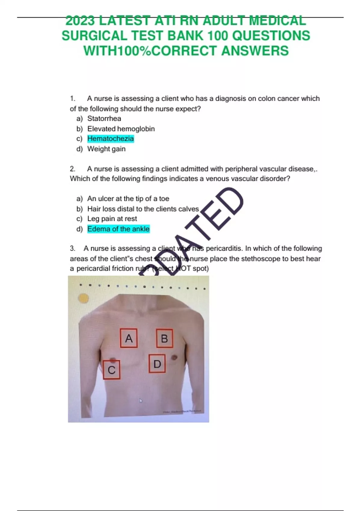 2023 LATEST ATI RN ADULT MEDICAL SURGICAL TEST BANK 100 QUESTIONS WITH100%CORRECT ANSWERS 2023 LATEST ATI RN ADULT MEDICAL SURGICAL TEST BANK 100 QUESTIONS WITH100%CORRECT ANSWERS