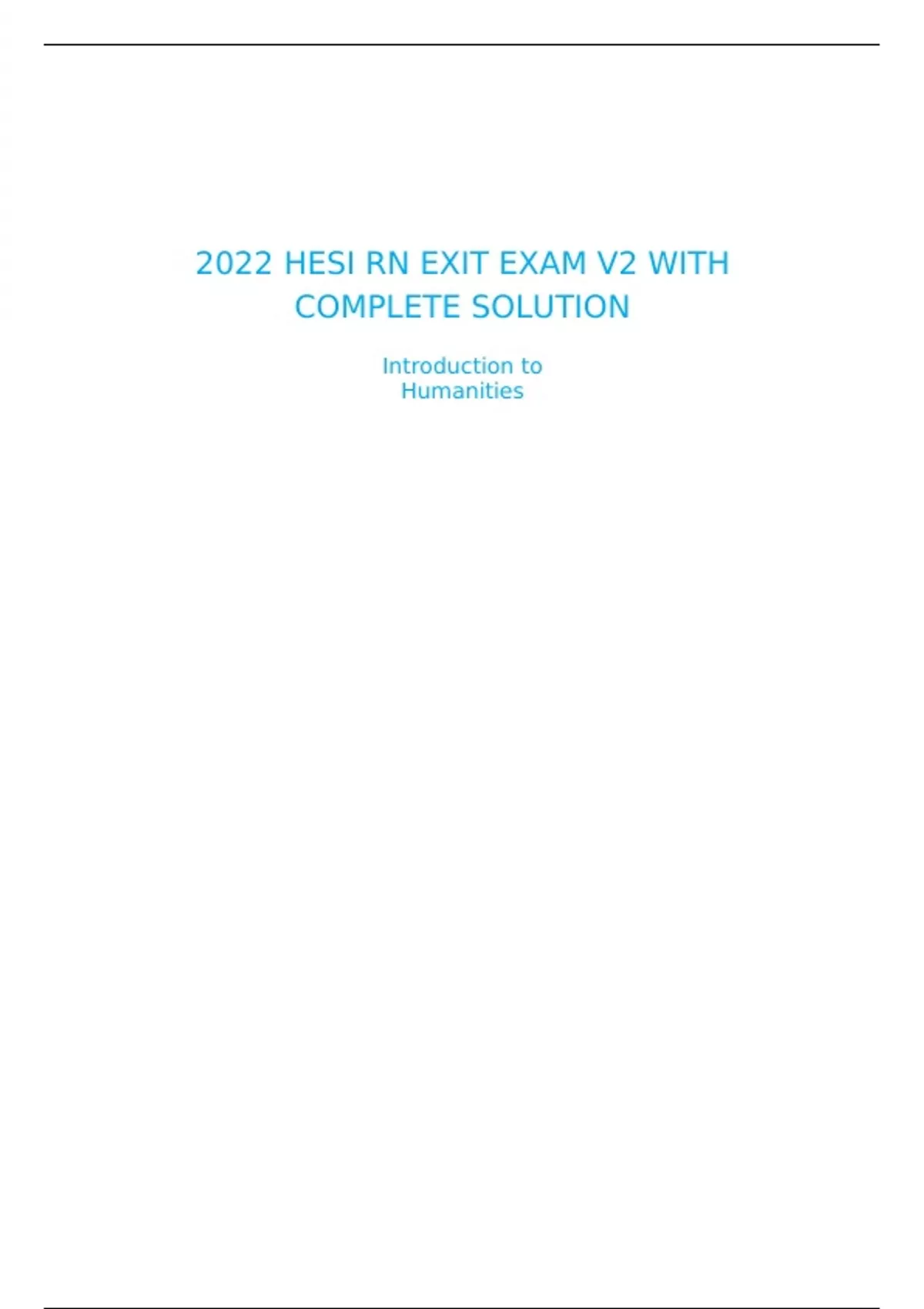 2022 HESI RN EXIT EXAM V2 WITH COMPLETESOLUTION Introduction to Humanities