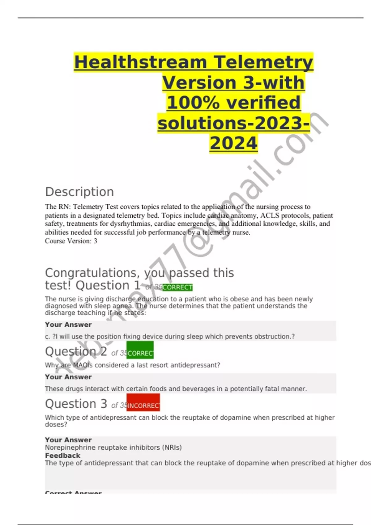 Healthstream Telemetry Version 3-with 100% verified solutions-