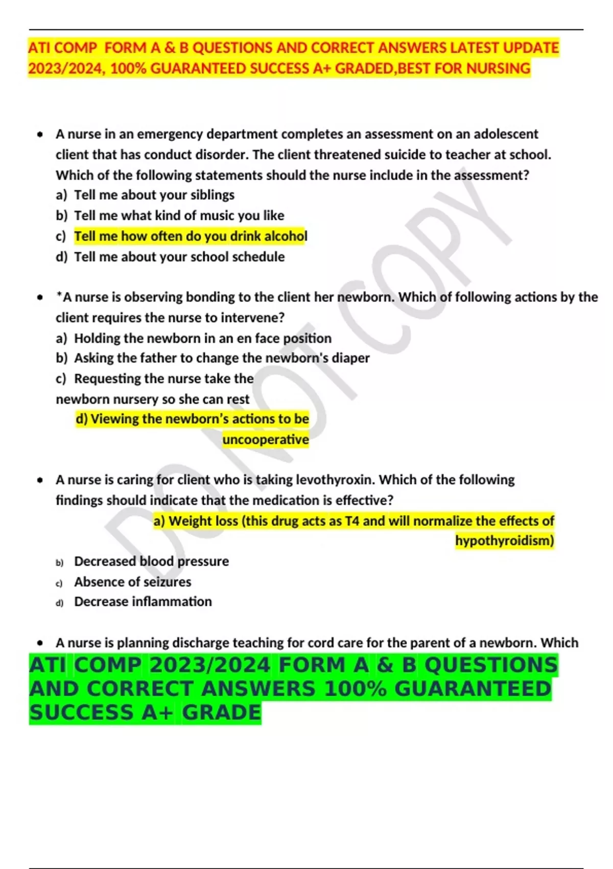 ATI COMP FORM A & B QUESTIONS AND CORRECT ANSWERS LATEST UPDATE 2023/2024, 100% GUARANTEED SUCCESS A+ GRADED,BEST FOR NURSING