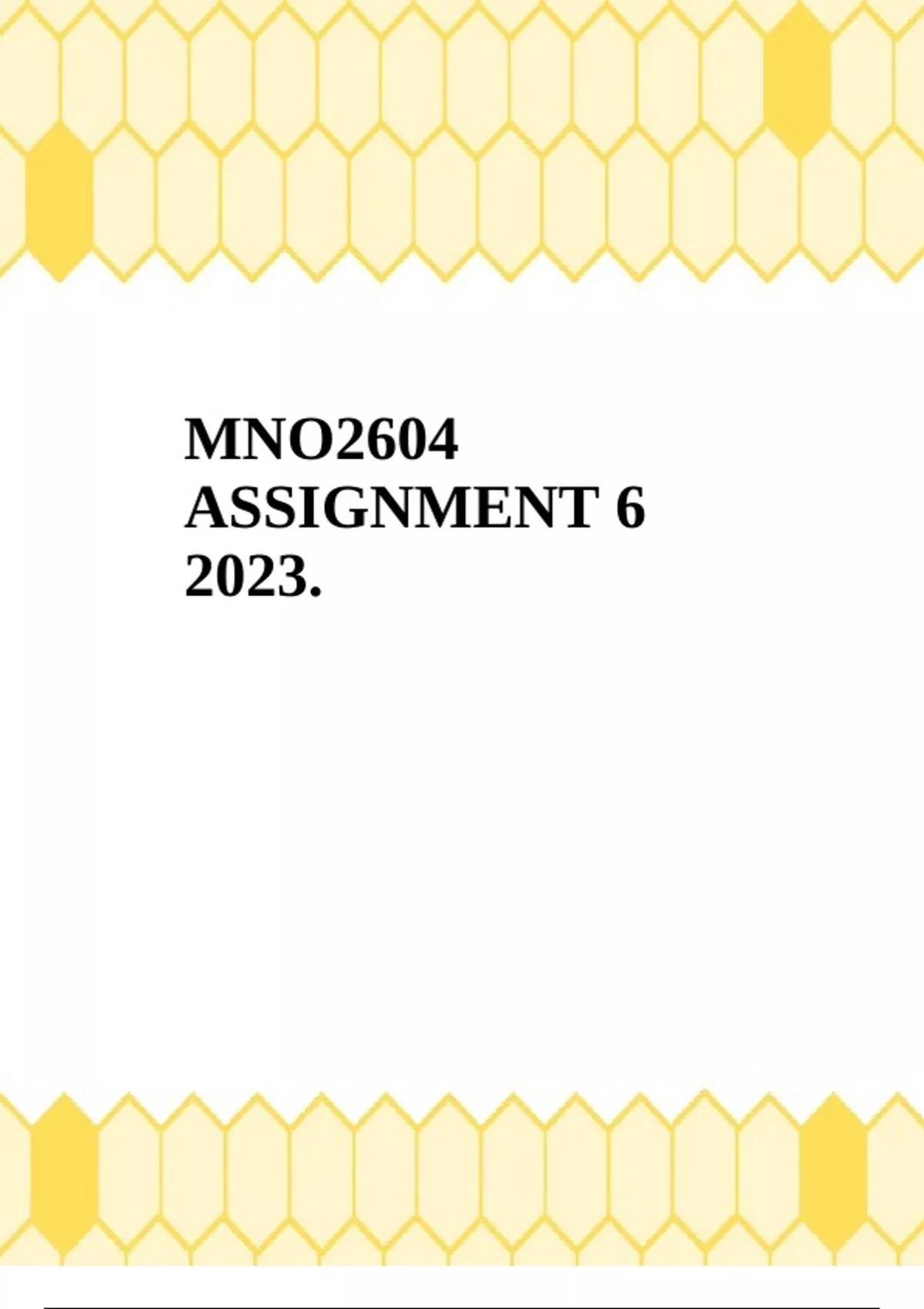 MNO2604 ASSIGNMENT 6 2023.Detailed working, solutions, memo, notes & explanations.