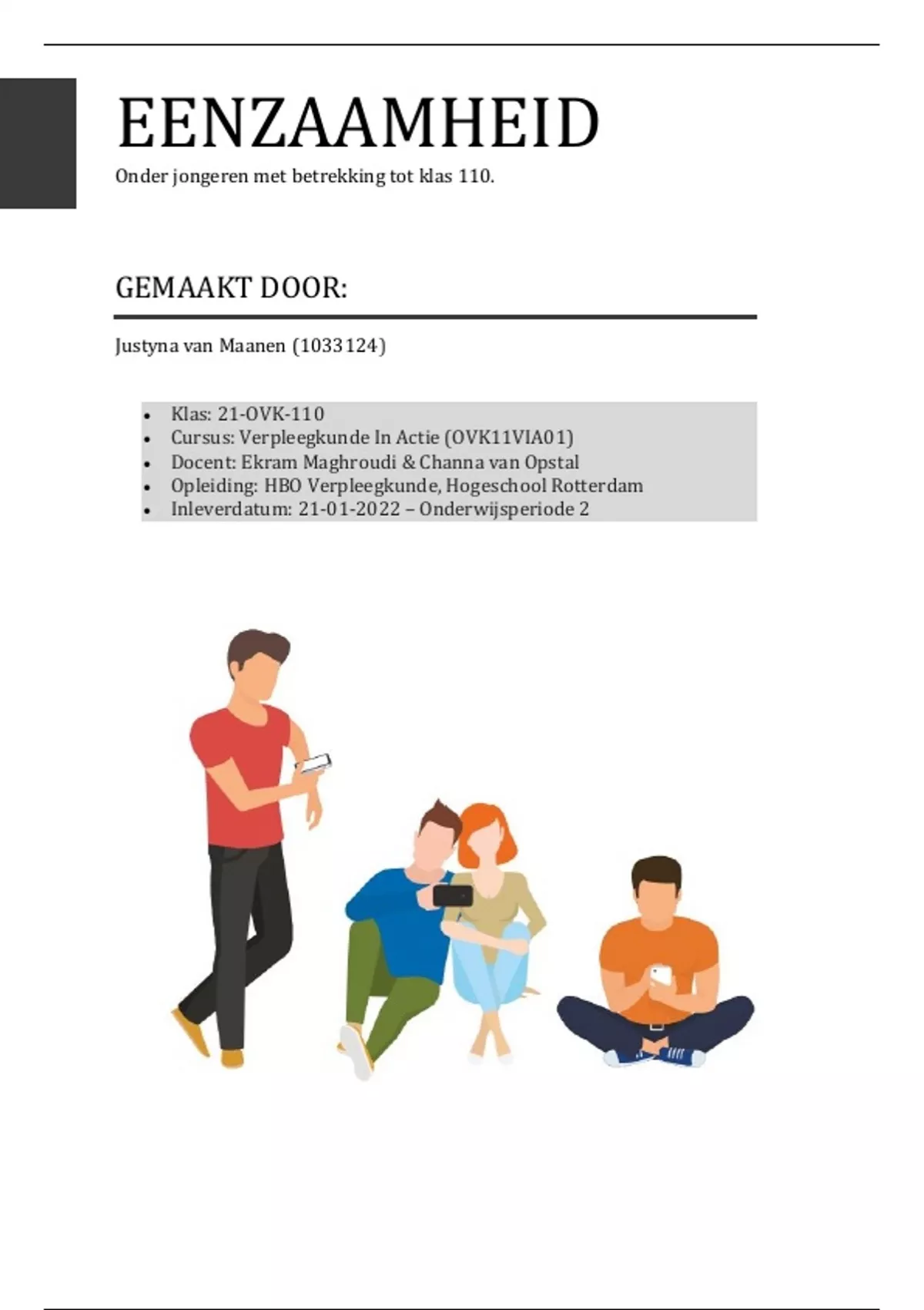 Eenzaamheid onder jongeren (specifiek klas 110, opleiding verpleegkunde, hogeschool