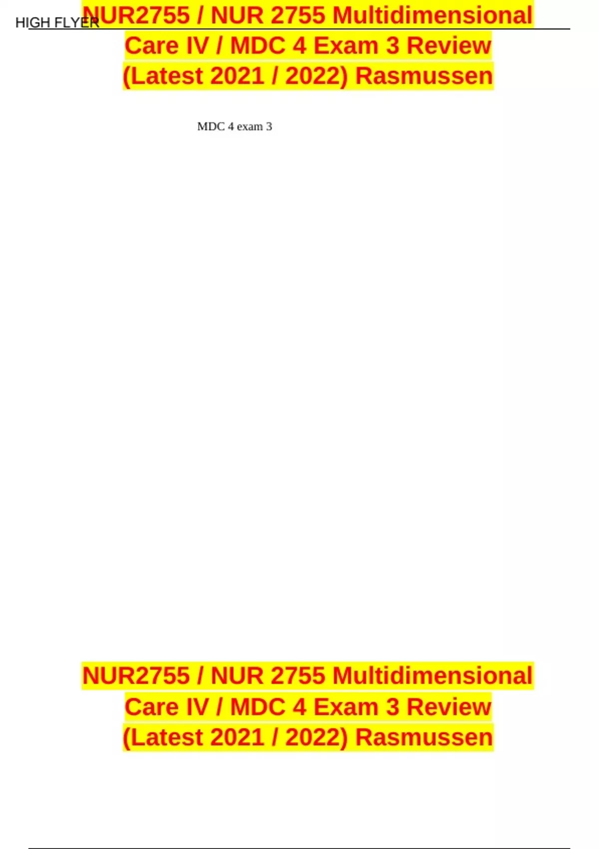 NUR2755 / NUR 2755 Multidimensional Care IV / MDC 4 Exam 3 Review (Latest 2021 / 2022)