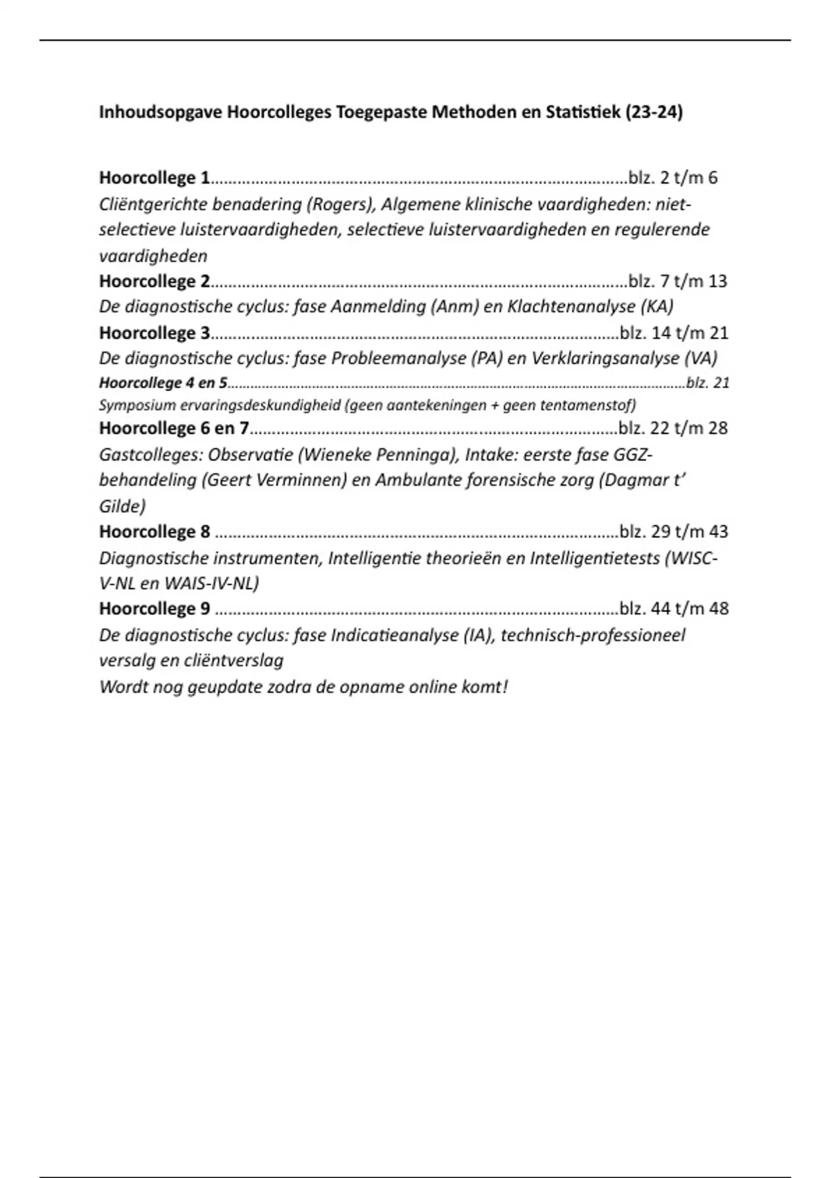 Hoorcollege 1…………………………………………………………………………………blz. 2 t/m 7