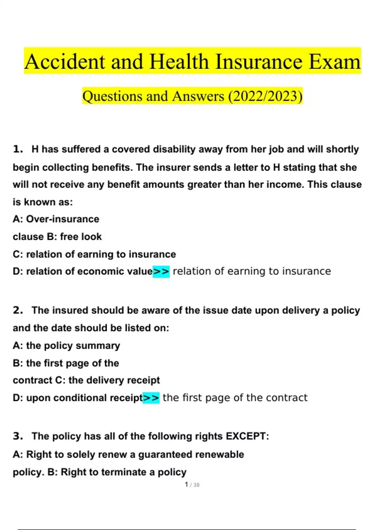 Accident and Health Insurance Exam Questions.