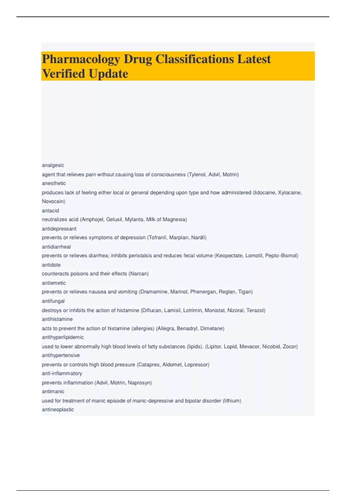 Pharmacology Drug Classifications Latest Verified Update