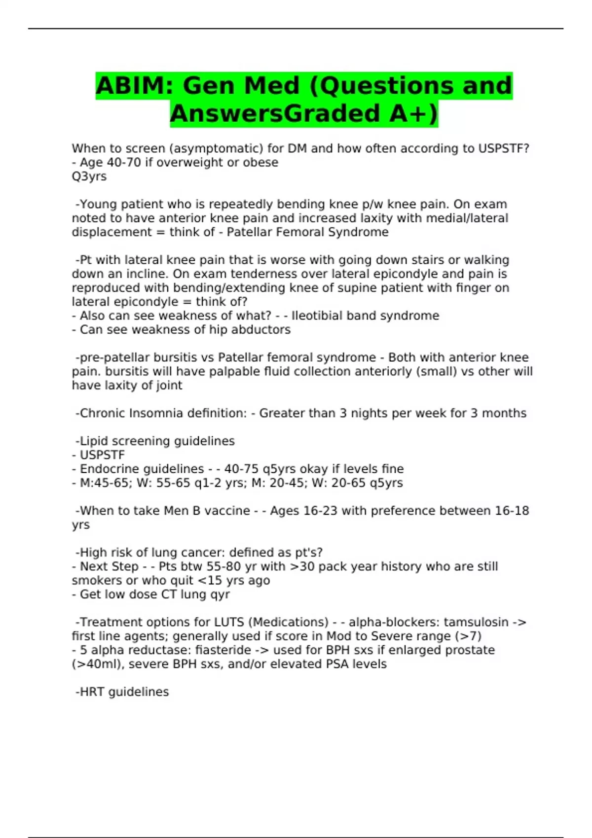 ABIM: Gen Med (Questions and Answers Graded A+)