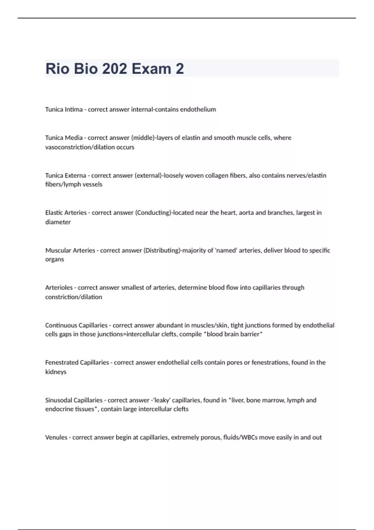 Rio Bio 202 Exam 2 questions and verified correct answers 2023