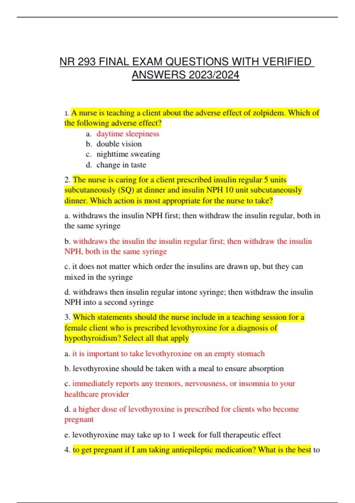 NR 293 FINAL EXAM QUESTIONS WITH VERIFIED ANSWERS 2023/2024 NR 293 FINAL EXAM QUESTIONS WITH VERIFIED ANSWERS 2023/2024