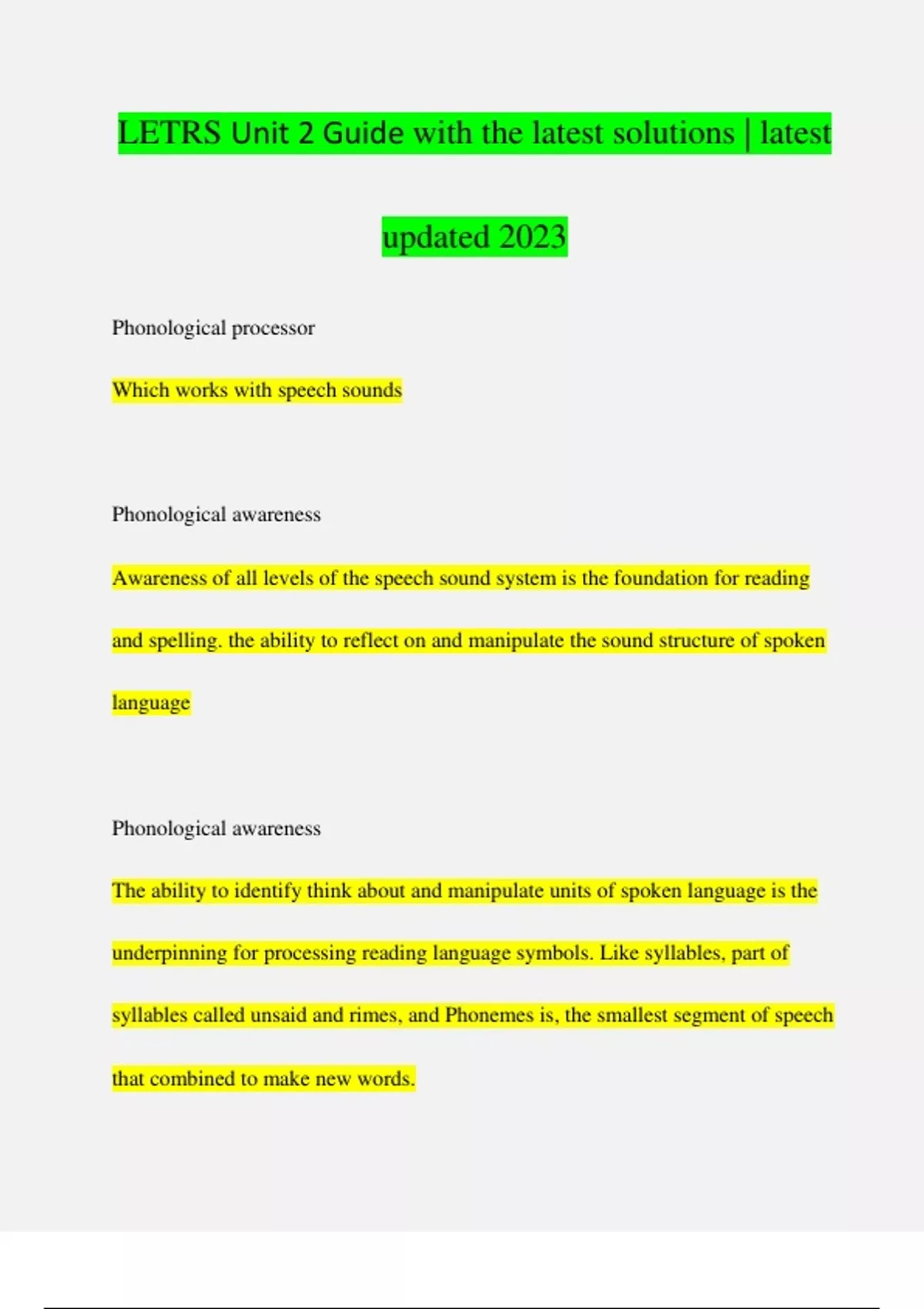 LETRS Unit 2 Guide with the latest solutions | latest updated 2023