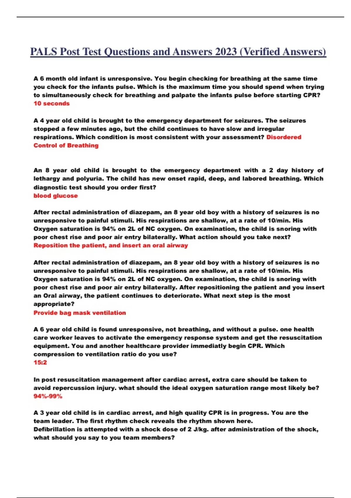 PALS Post Test Questions and Answers 2023 (Verified Answers) PALS Post Test Questions and Answers 2023 (Verified Answers)